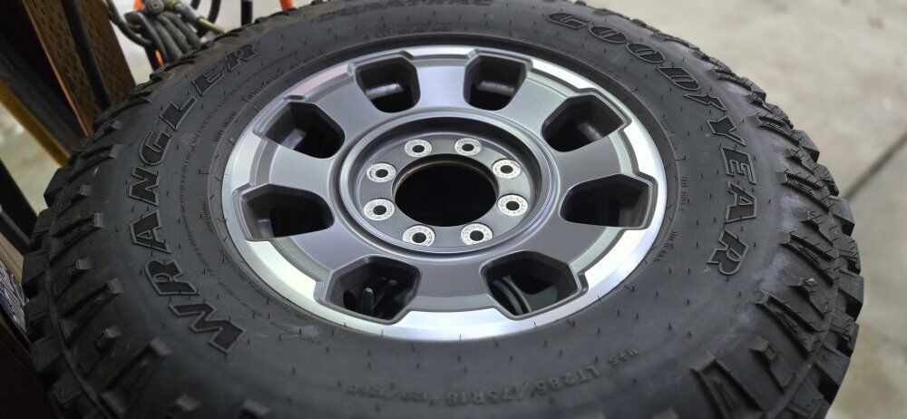 2025 Ford F350 Tremor Rims and Tires LT285/75R18 Goodyear Wrangler Duratrac Load E great shape, comes with nuts but no tpms sensors. text 801-430-0076