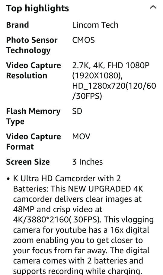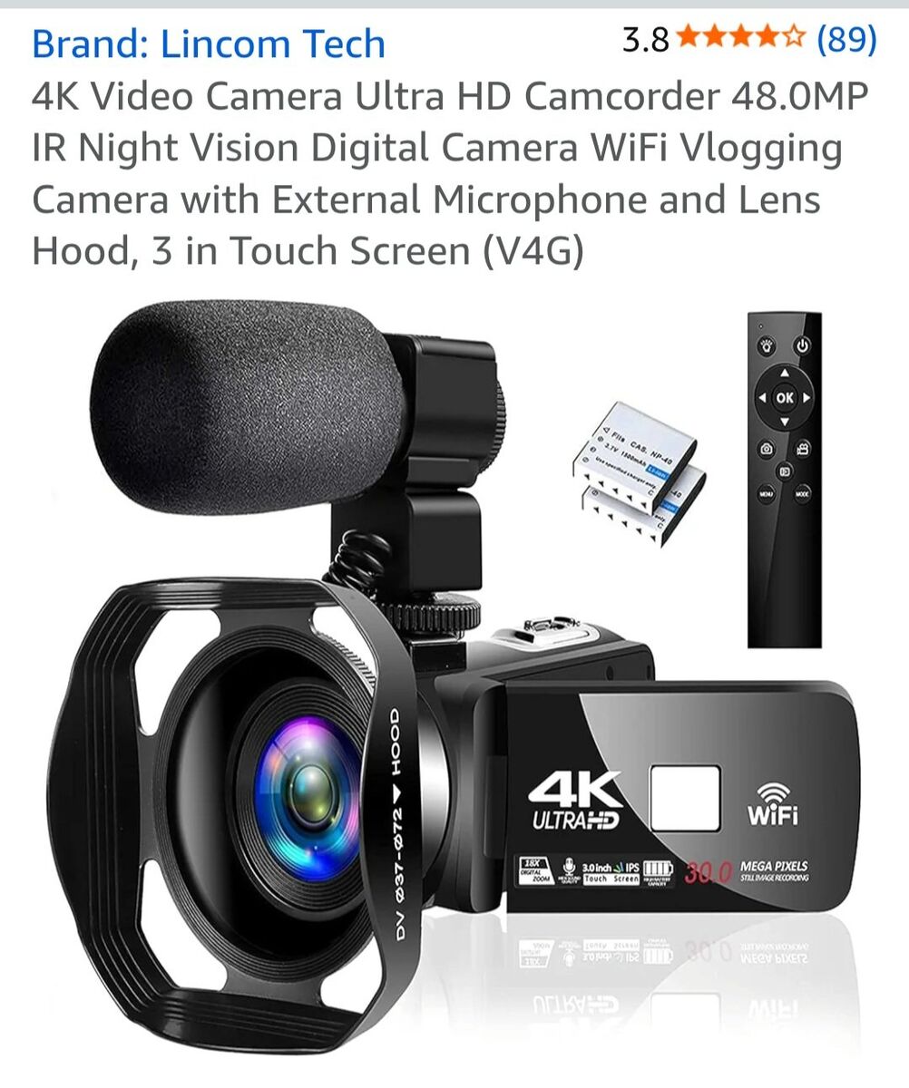 PayPalNever used video camera. Please see photos for specs. Comes with the tripod Comes with 128GB SD card Does not come with extra batteries, remote, or lense hood
