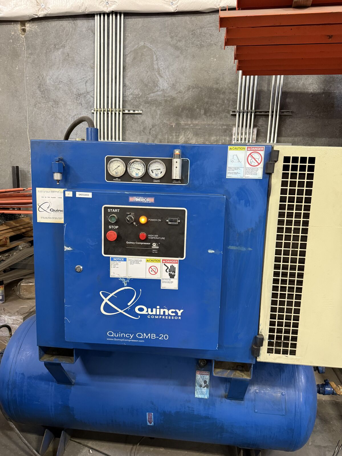 VenmoSelling a solid Quincy rotary screw air compressor (20 HP class). This is a commercial-grade unit built for continuous, reliable air in demanding shop environments.