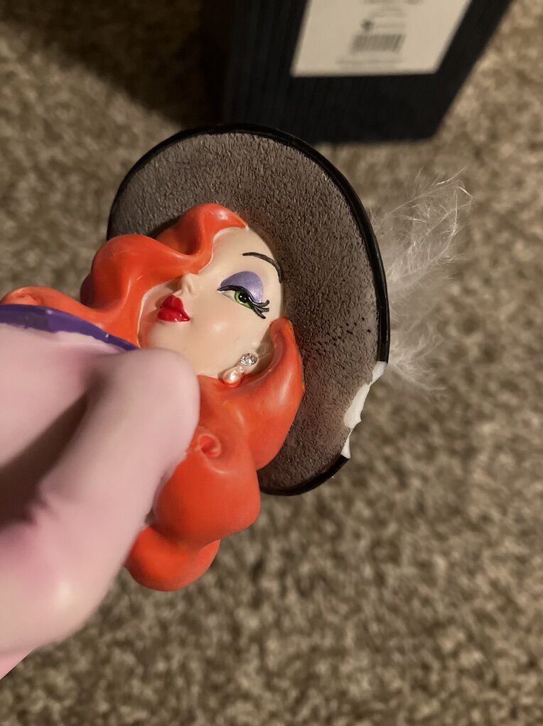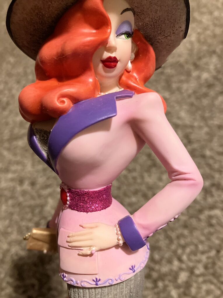 VenmoThe Disney Showcase Collection Jessica Rabbit Figurine by Enesco is a highly detailed and collectible statue. This figurine is the beloved character from the Disney movie Who Framed Roger Rabbit. There is a small chip in her hat- shown in pictures. Standing at 9 inches tall, the iconic Jessica Rabbit with her signature style and charm. Made in China but with a Disney franchise. Have the original box Jessica Rabbit came in. This figurine captures the essence of the classic characters from the film.