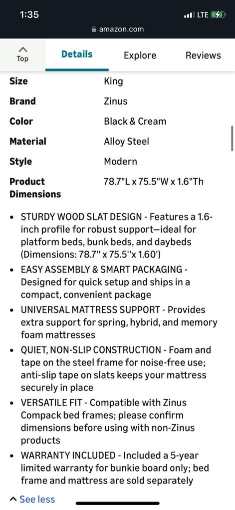 Zinus Deepak Easy Assembly Wood Slat 1.6 Inch Bunkie Board, Bed Slat Replacement, King