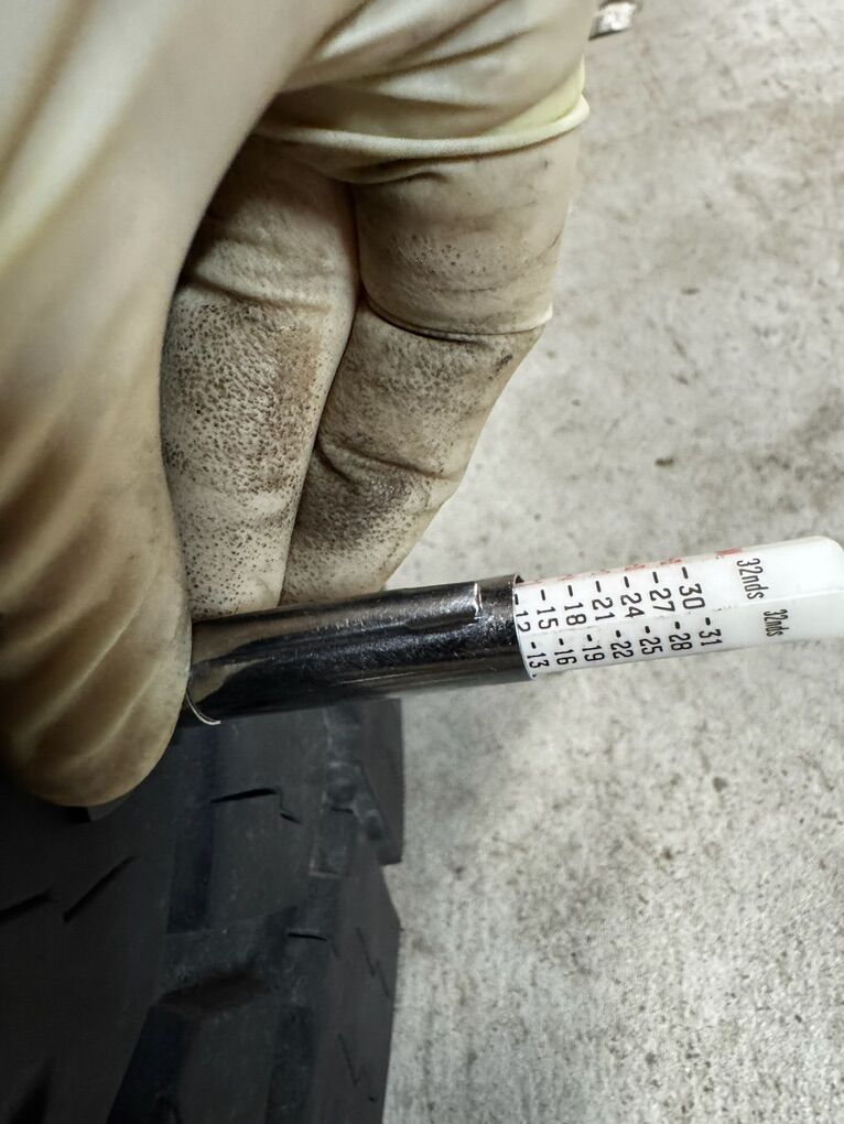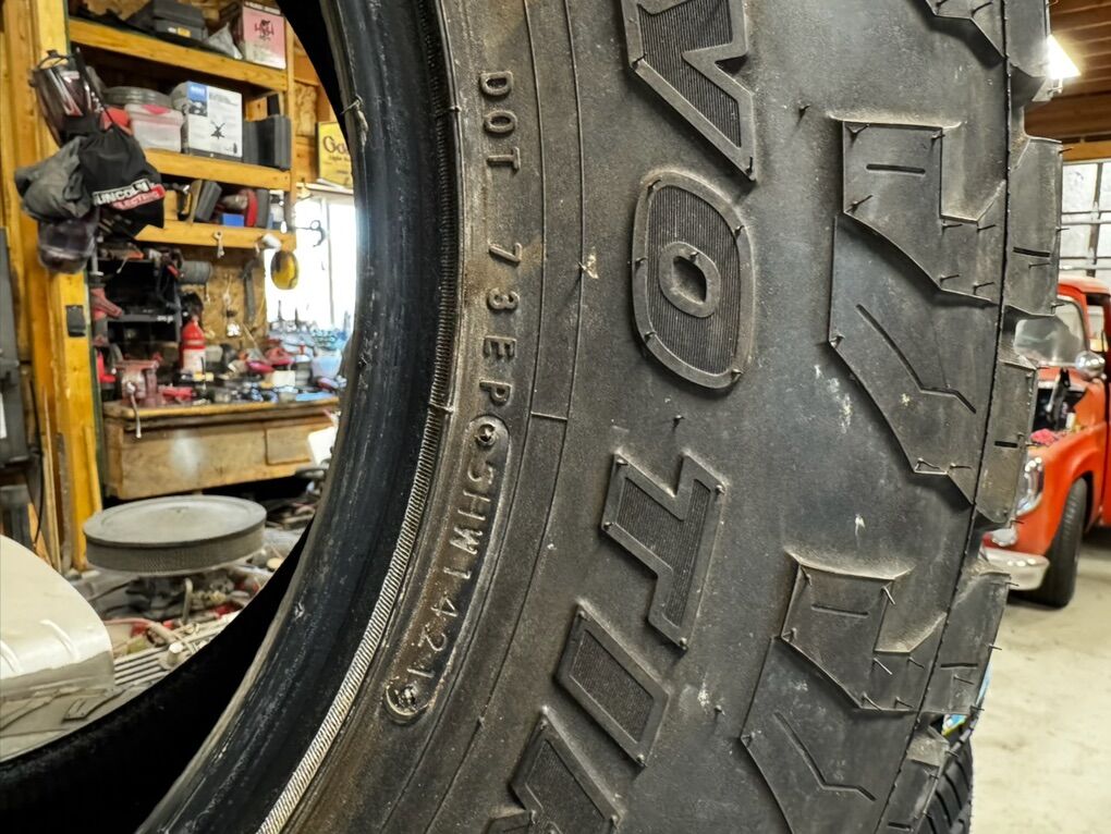 35X12.50R18 Toyo A/TIII Load Range D 8-Ply’s Spare is a 17/32’s The other four are 12/32’s