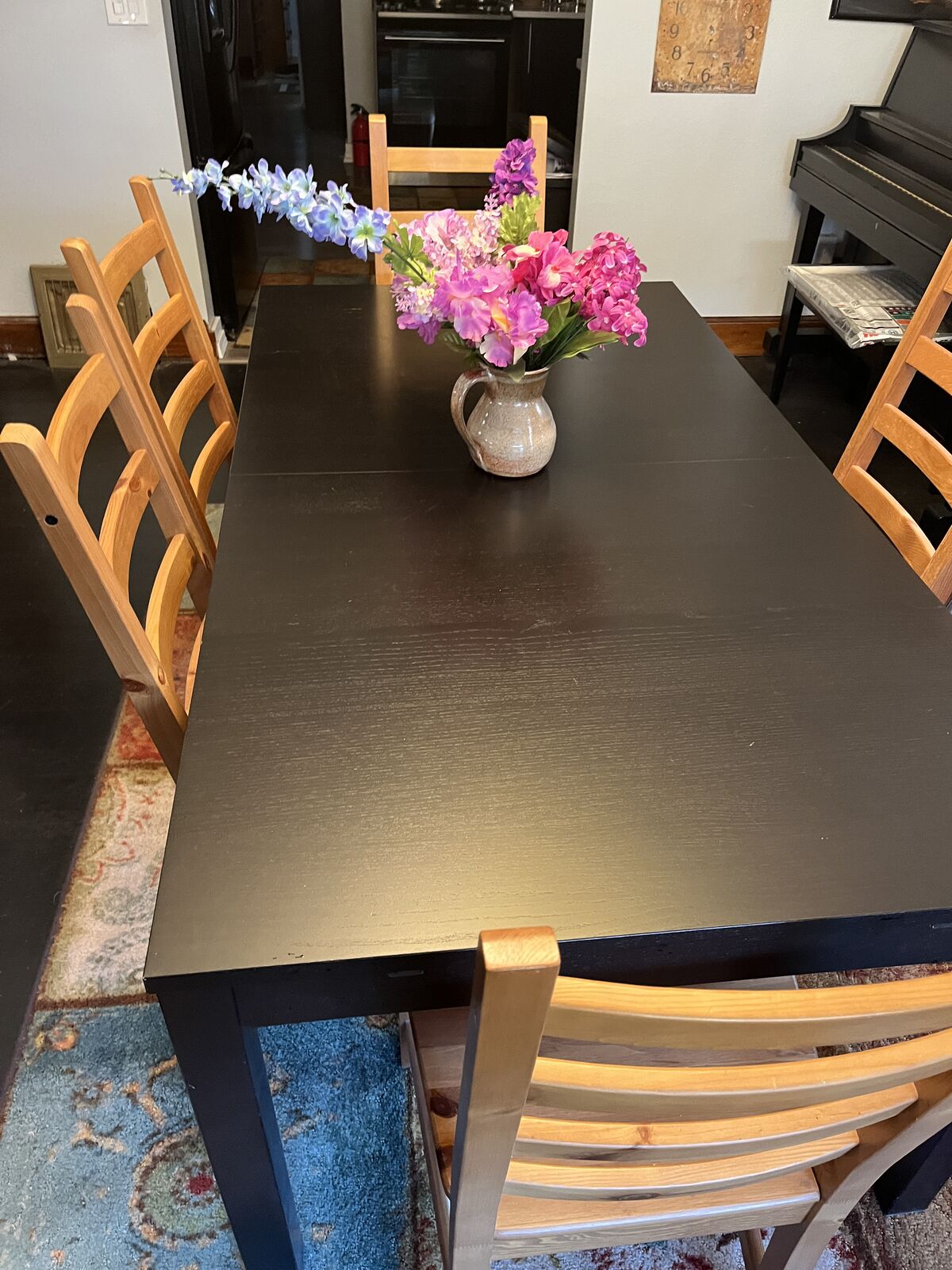 ZelleI couldn't find an exact match in the IKEA line as this is larger. Except for some wear on one end (see pic), this set is essentially perfect and a stain pen or even a marker could fix it up in seconds. Dimensions are 67 7/8 x 37 3/8 and it has two leaves at 16 3/4 each which takes the overall length to something around 100". Easily slide out a side, grab the leaves, drop them in. The closest IKEA match (with smaller table) plus chairs is $789 plus tax. $400obo. Calling, email, or text is best b/c I don't always catch KSL messaging. I can do CASH or ZELLE but I'm NOT set up for VENMO. Some chairs not shown in images. We can negotiate on me keeping some of the chairs if you don't need all of them. Another option is $300 with 4 chairs
