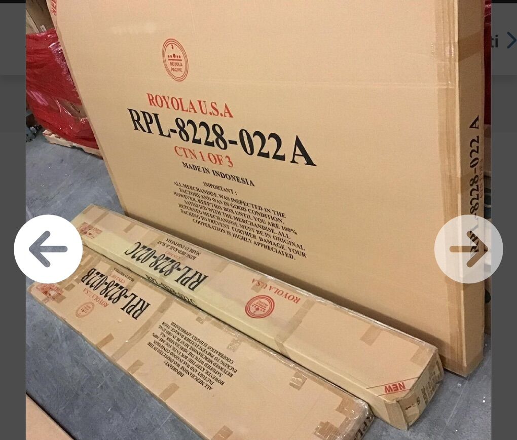 est.MSRP: $800 Notes: Pictures are form an Assembled bed and are for Referance Only. This listing is the Same Bed, Still Factory Sealed in the boxes. Condition: New Factory Sealed Size: Californa King Brand: Royola USA Model: RPL8228 UPC: NOUPC{9933426} This Californa King-size bed frame features a sturdy all-wood construction with a rich dark brown stain, adding a touch of elegance to any bedroom. The design includes a sleek, curved headboard that enhances its modern aesthetic. The frame is equipped with slats for mattress support, ensuring durability and stability. Its clean lines and classic finish make it a versatile piece that complements various decor styles. Ideal for those seeking both style and functionality in their sleeping space.