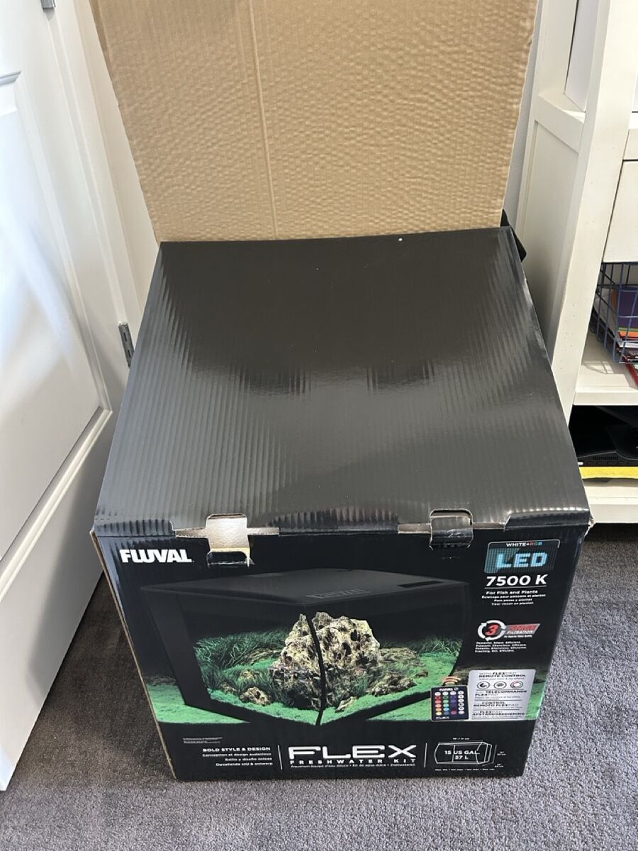 Includes the tank, pump, sponge filter, lighted hood, remote control for lighting, heater made by Fluval, and the leveling foam/rubber pad. Including the original box and foam to protect it. Originally purchased for $180 ($150 for the aquarium, $30 heater)