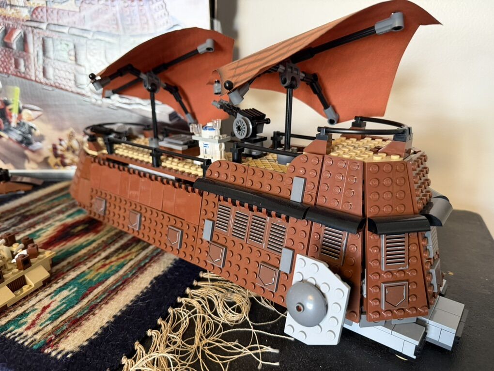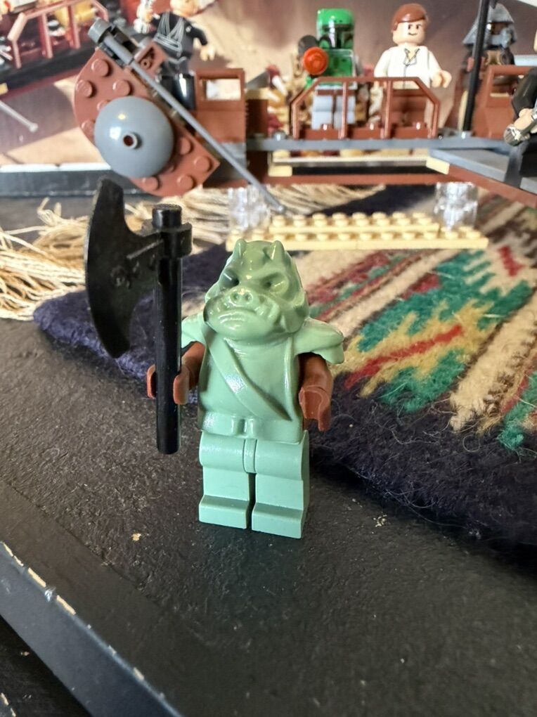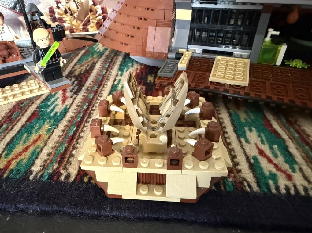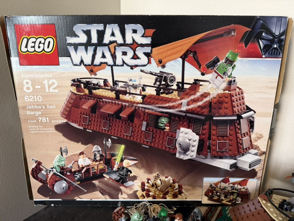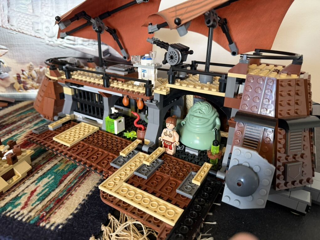 Awesome set from 2006 and is definitely one of my favorites. This is a complete set with all the minifigures (Jabba the Hutt, Princess Leia, Han Solo, R2-D2, Boba Fett, Lando Calrissian, Luke Skywalker, and Gamorrean Guard), the original box, and the original instruction manual. Everything in this set is in really good condition. The only issue is that the left hand on the Gamorrean Guard is broken and that is shown in the last picture.