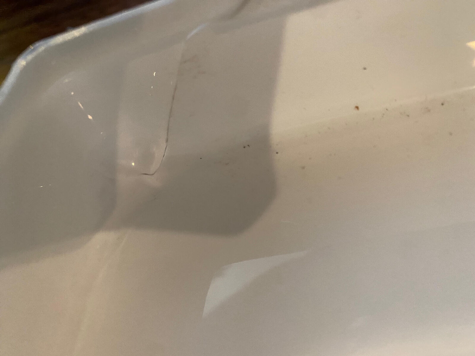 Brand New in the Box (With Minor Crack, see pictures, EASILY REPAIRED WITH WHITE CAULK WHEN INSTALLED)
