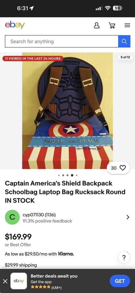 Captain America 75th anniversary shield backpack $25 nice quality, not a toy