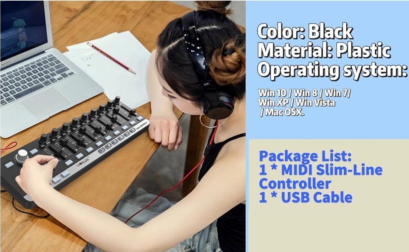 Pre-Owned Portable Mini USB 9 Slim-Line Control MIDI Controller Keyboard Controller, works great, see all photos, text message is better, see my other adds, thank you.