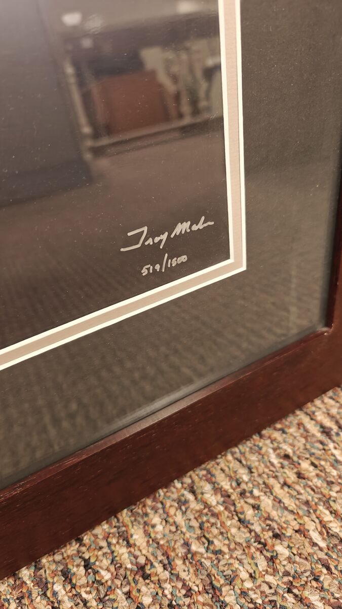 Artwork is in good condition, with little wear on the top frame as seen in picture with no damage. Ready to hang.