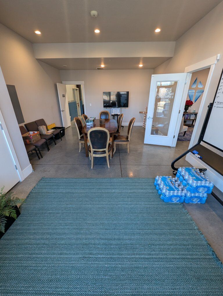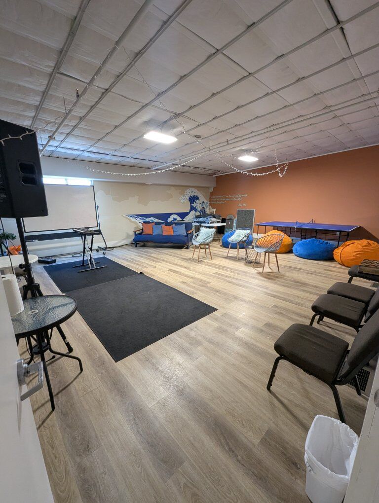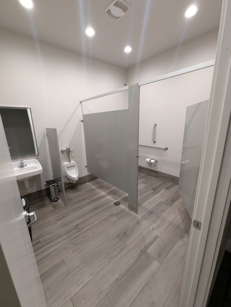 Front unit of warehouse building. End unit with frontage access. Lower unit consists of two rooms, one larger than the other ~1000sqft, the other room ~360sqft with partition between. The larger room has a kitchenette/ coffee bar. There is a single bathroom and storage closet beyond these two rooms on the first floor. A staircase leads to two equal square footage rooms ~750sqft each. One of these second floor rooms contains a kitchenette as well. This unit is surrounded by a welding and fabrication shop, but the walls between units are double walls with sound insulation.
