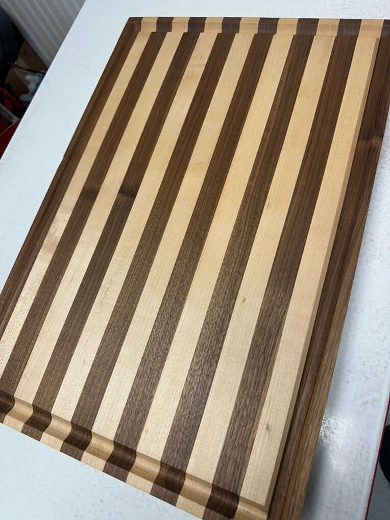 Great cutting board that will last a life time. 22 5/8 x 15 1/4 x 1 1/2.
