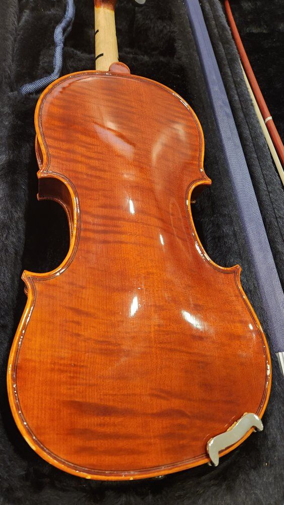 VenmoThis half size violin was built in 2008. It's a Klaus Mueller Etude model#110h. it is in very good shape and has a Beautiful flame maple back and sides. The case is nice but it's missing the center handle.