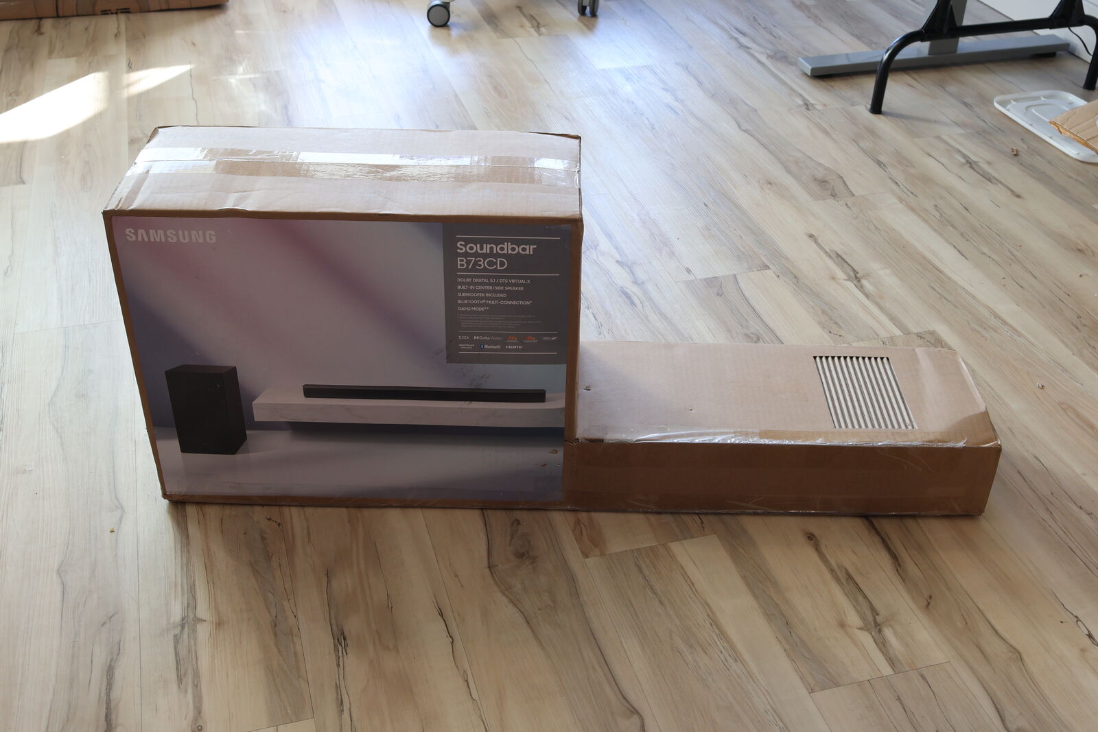 ApplePaySamsung HW-B73CD 5.1-channel soundbar system with DTS Virtual:X and wireless subwoofer.