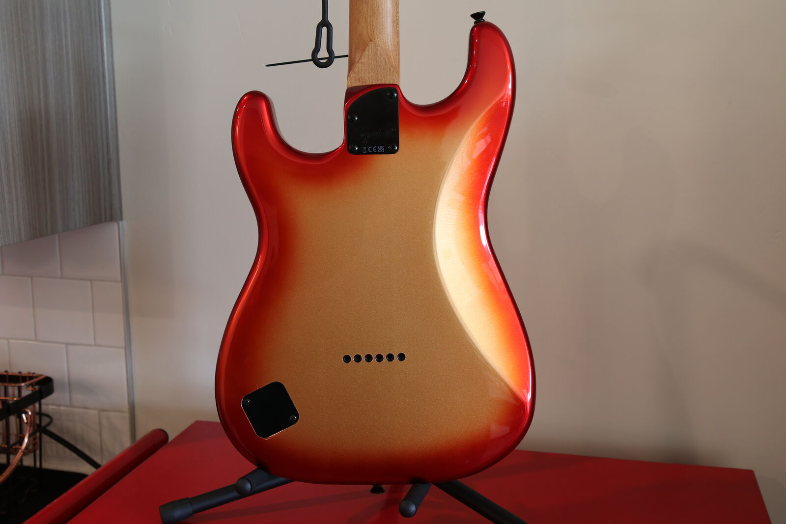 ApplePayThis guitar currently has a rubber bridge modification installed, giving a muted, percussive tone. This is not a factory feature. Flatwound strings installed