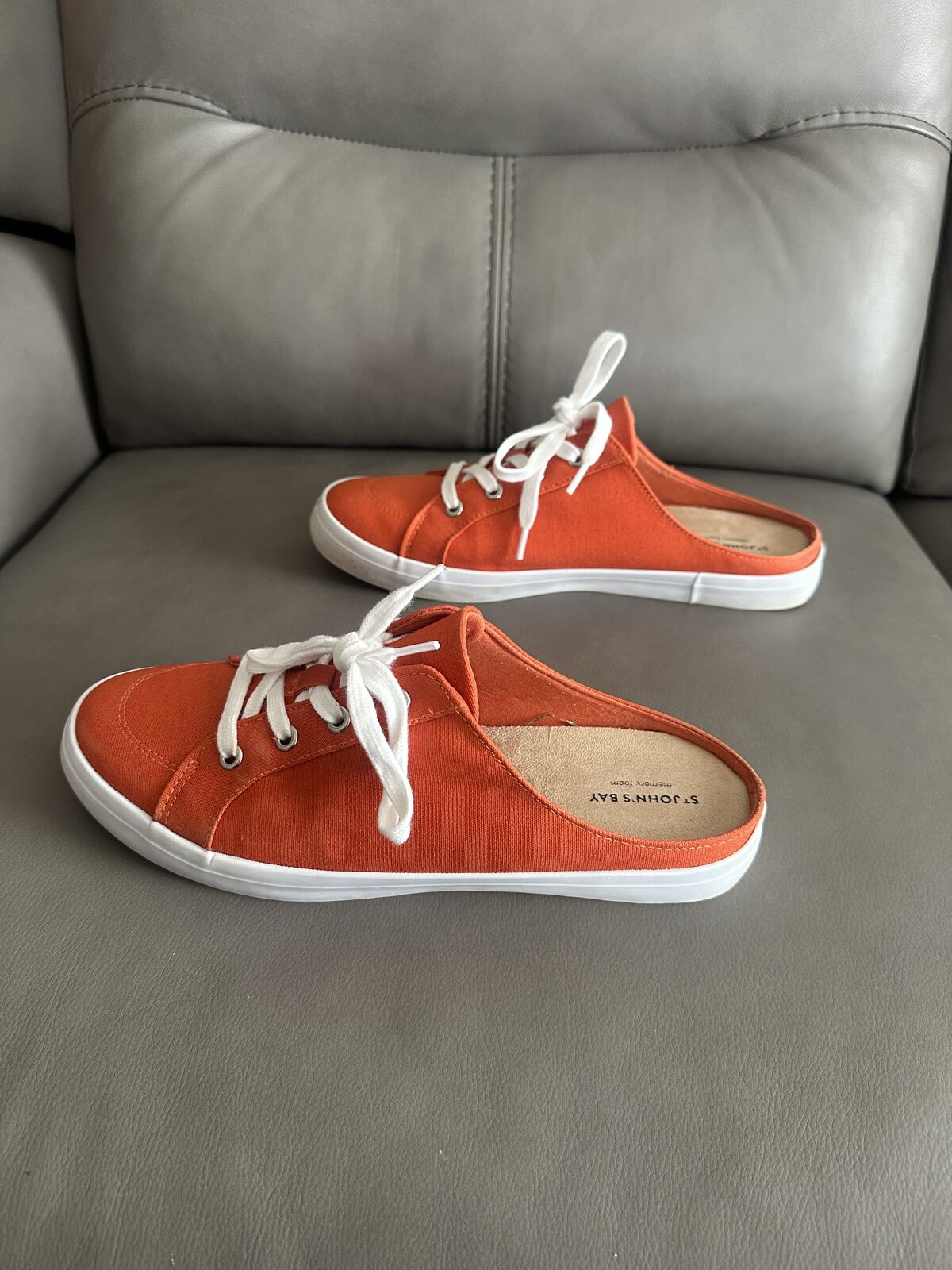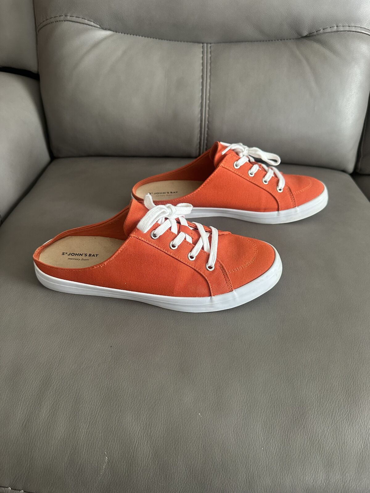 VenmoSt. John's Bay orange open heel tennis shoe. US Size 10M. Worn once. Please look at all pictures to get a good idea about the item. Cross Listed. Located in Spanish Fork. I accept cash or Venmo. First come, first served, NO HOLDS.