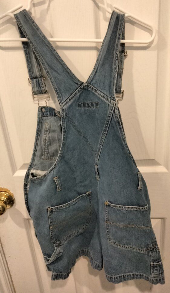 vintage 90s/Y2K No Boundaries denim overall shorts.
