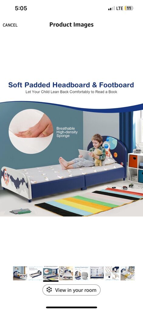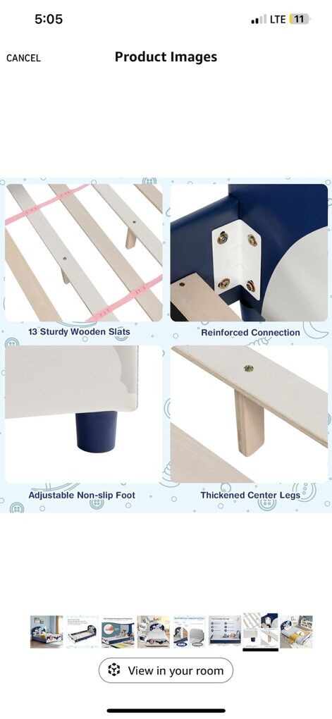 [ Sturdy & Stable Construction ] Our plywood frame with high quality hardware and reinforced connection that provides a strong and sturdy bed. The inner bed is supported by 13 wooden slats and 7 thickened center legs. Adjustable non-slip foot satisfies different grounds. The whole bed can hold up to 350 pounds. No box spring needed. [ Kids Friendly Height ] It is 10 inches from this twin size bed to the floor, which is convenient for your little child to climb up or down without any help. The whole dimension of the bed: 80” x 42” x 32”(L x W x H). Fits standard twin mattress (not included). Suit for kids over 3 years old. [ Upholstered Twin Bed ] This adorable kids twin bed features soft padded headboard & footboard and covered by waterproof PVC which is convenient to wipe clean. Breathable high-density sponge padded on the headboard ensures long-lasting comfort and support for little child while sitting up to read or watch TV. [ Simple Assembly ] With detailed graphic instructions and required accessories, our kids twin size bed frame is easy to assemble without taking up too much time. And maybe your little child can help you complete this project together