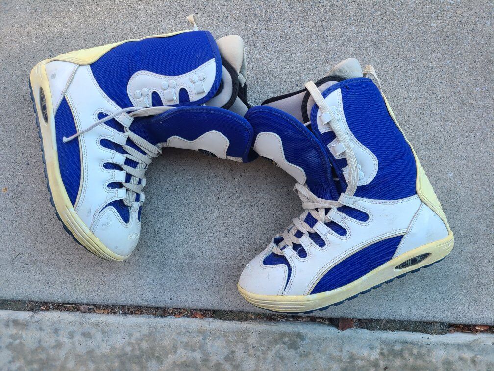 Ride snowboard boots, white and blue. fits men's 8 and women's 9 too.