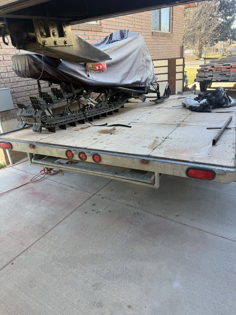 VenmoVery good condition. New decking made out of 1” ply plywood. Heavy duty galvanized frame. Holds 3 sleds. 7 pin wiring. Brand new wheel bearing and freshly packed and greased last year. Great trailer just have a bigger one now and don’t need. Does not include sled! Haha
