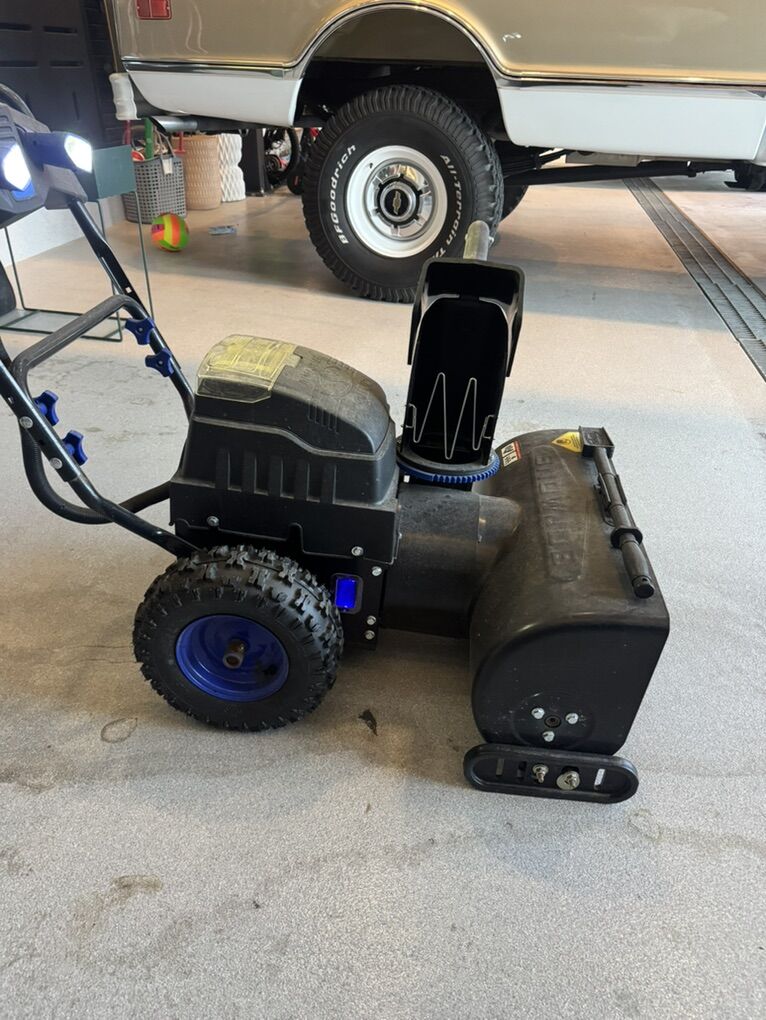 PayPalThis electric snowblower has a 24 inch wide cutting path. Works extremely well and is in great condition. It comes with a wall charger and two sets of batteries.