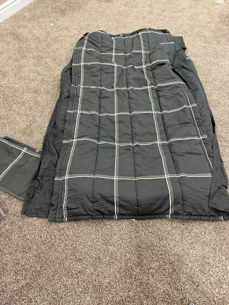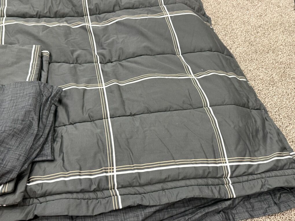 Has 1 sheet and 1 sham and 1 case. Gently used possible faint lotion type spots on top. Dec77