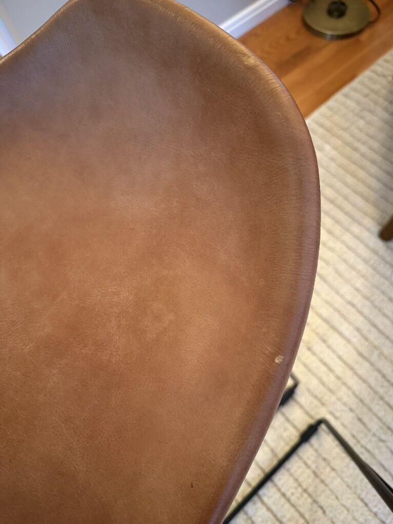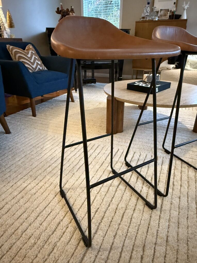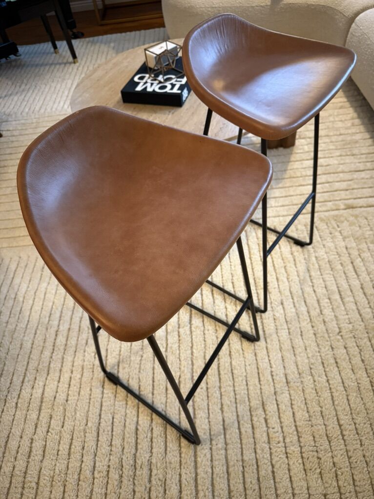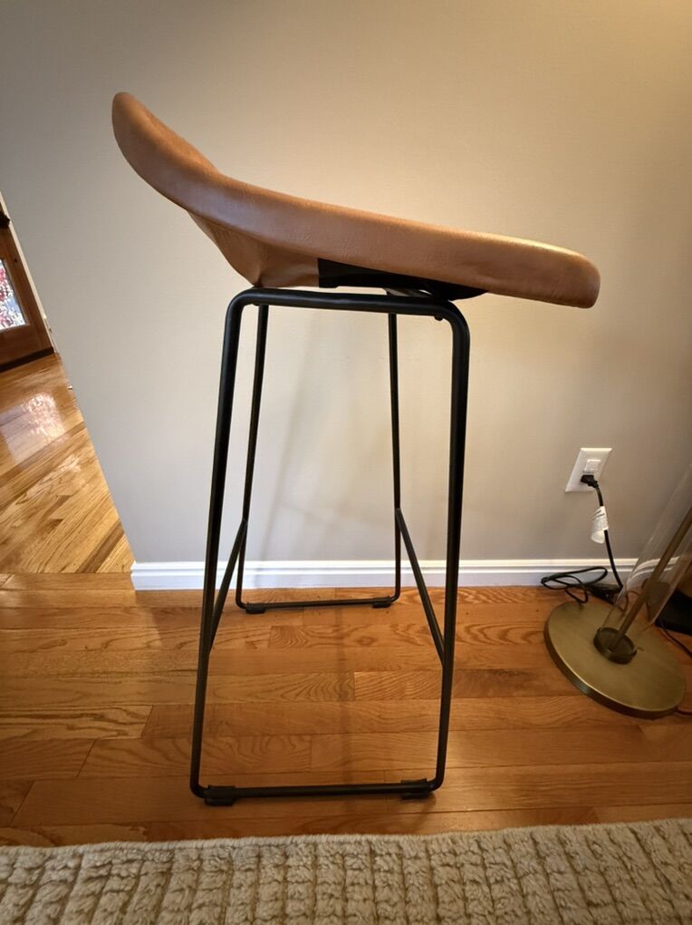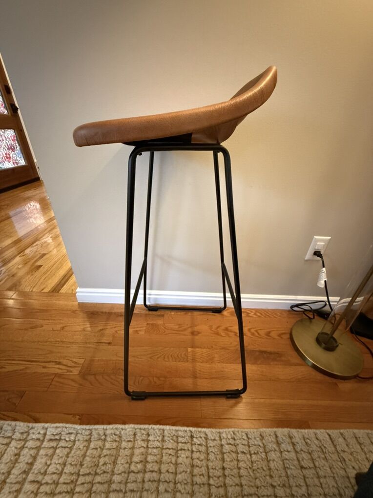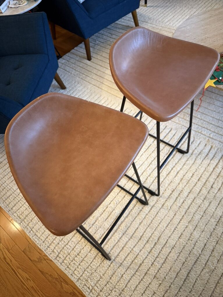 VenmoBarely used for ~6 months because we needed counter height instead. Selling both chairs for $150 total. One chair has 2 small blemishes (pictured). Stock photo is counter height, these are bar height: 30” h x 15” w x 14” d. Paid $200 each.