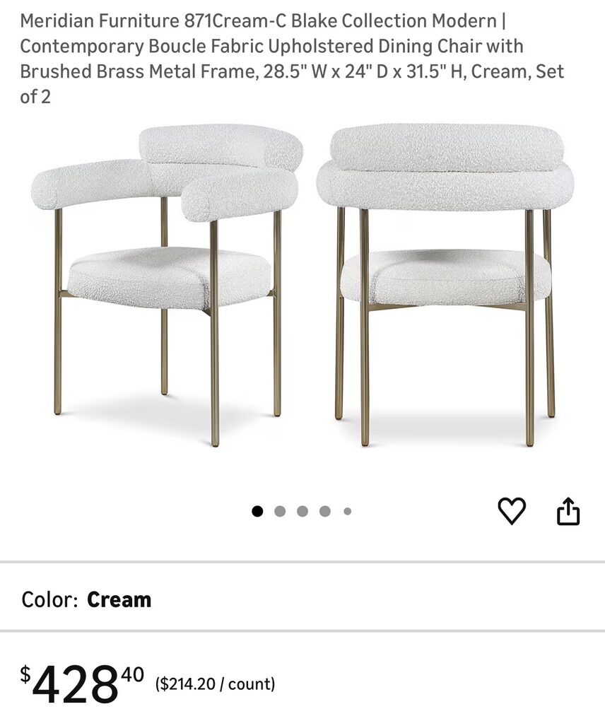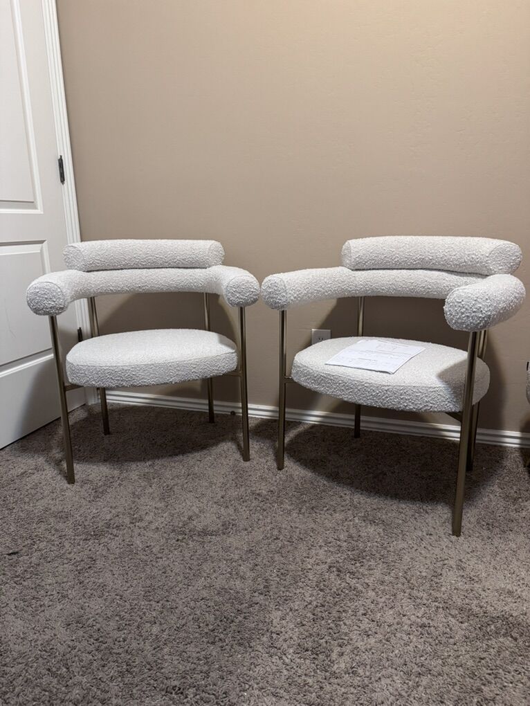VenmoNew out of the box and assembled set of 2, Modern Contemporary Boucle Fabric Upholstered Dining Chair or accent chairs with Brushed Brass Metal Frame, 28.5 W × 24 D × 31.5 H, Cream, Set of 2
