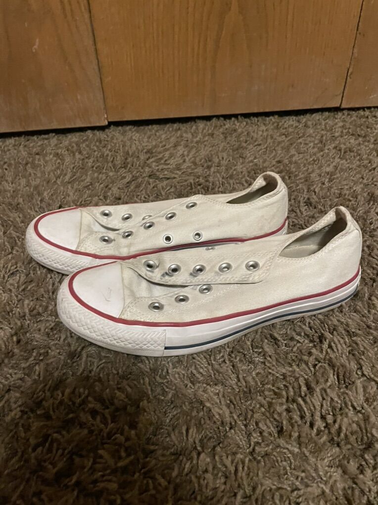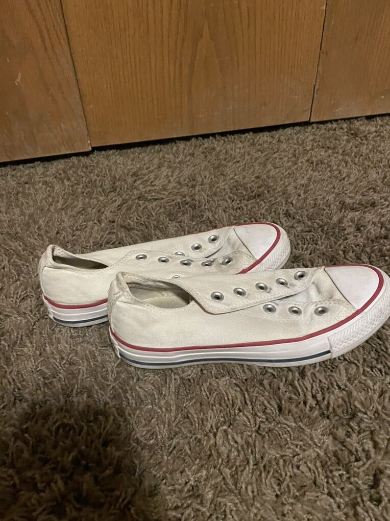 These shoes are basically brand, in new in size 6 in women’s they’re a bit scuffed up, but with a good cleaning will work great! Im asking for 10$ but the price is negotiable. I will only take cash