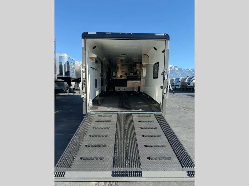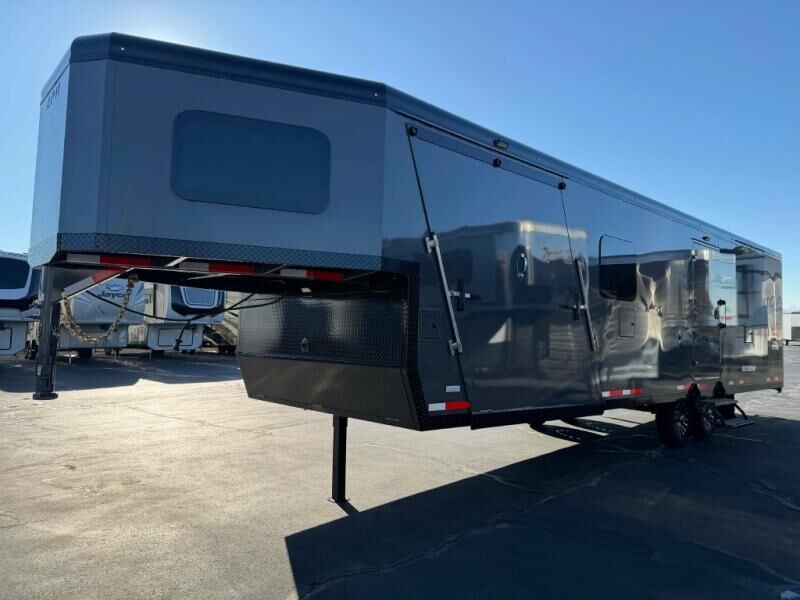 Gooseneck cargo trailer designed for OHV's such as snowmobiles and ATV's.