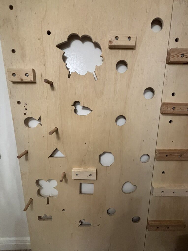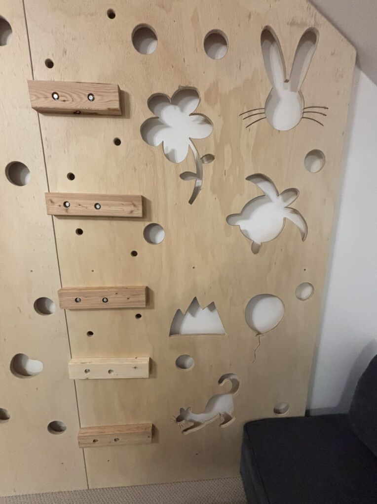ApplePayThis is an extremely fun and cute climbing wall I built for my kids. They have loved it so much I wanted to share it with the world. For $350 I’ll build you a panel, which includes custom cutting/shapes, sanding and oiling the wood. I’ll also give you everything you need to stick it to your wall.