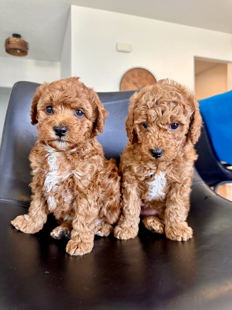 Why Our Doodles? • Non-shedding • Soft, wavy “fleece” coats • Ideal size for indoor living (8–15 lbs full grown) • Gentle, affectionate temperaments • Will receive their first round of vaccinations
