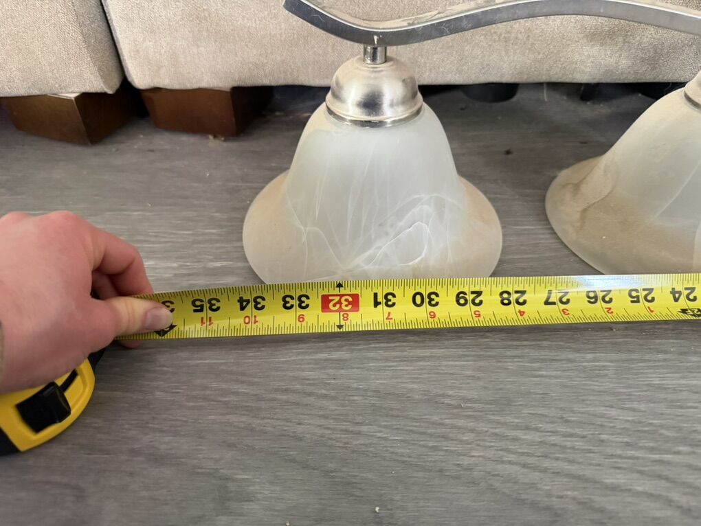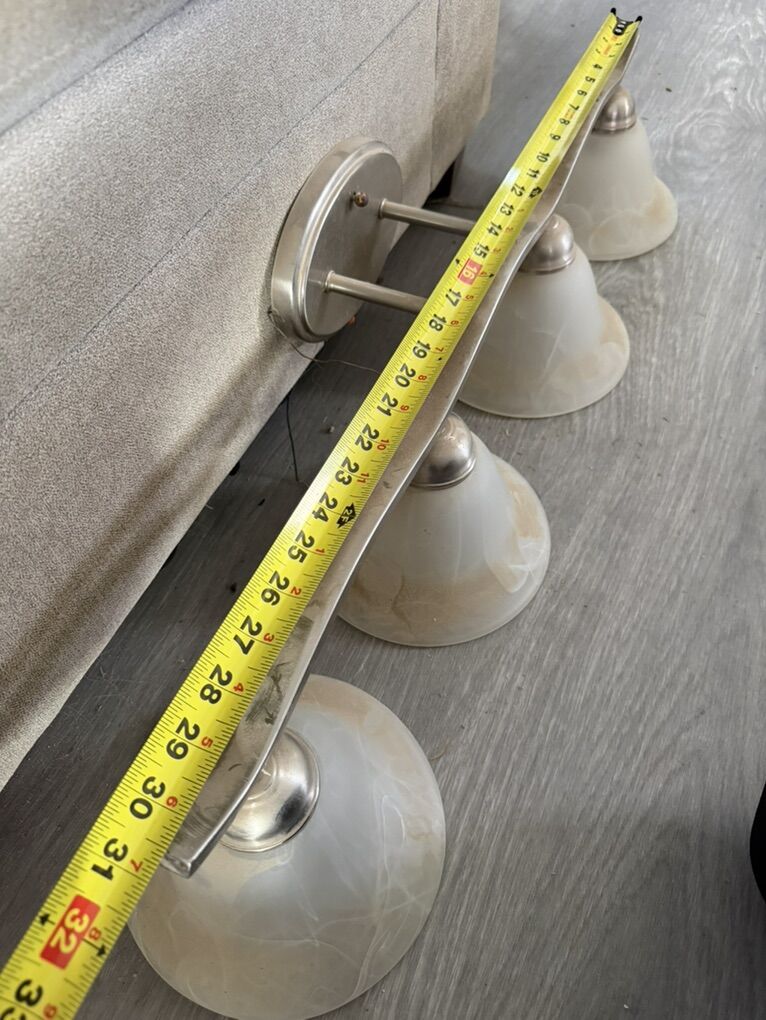 ApplePay30 - 35 in.brushed nickel vanity light. Has been used, though is in great condition besides some dust it collected. Asking only $35 even tho they’re worth a lot more. I included measurements in pics.