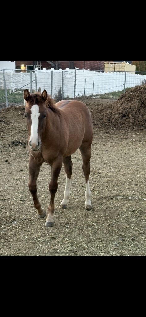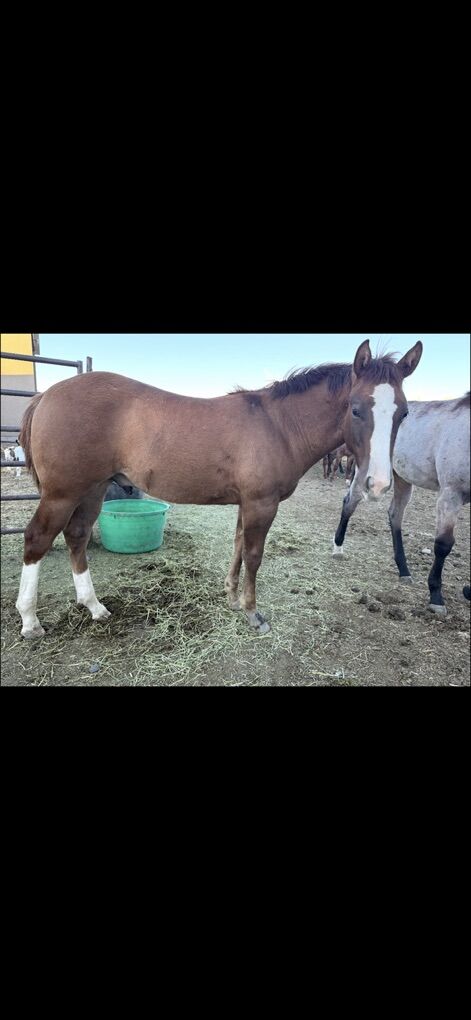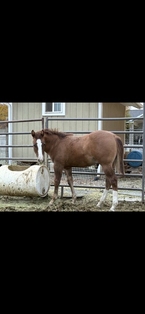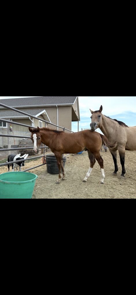 He is up to date on all shots and worming. He is halter broke. Leads, loads and is already a farriers dream.