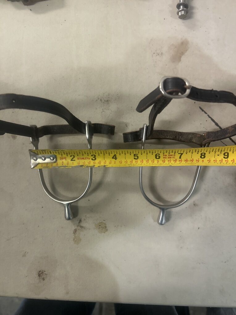 VenmoThese were my daughter’s, and her boots have outgrown them. Nice and shiny, includes the leather straps (which could use some oiling, but I’ll do that for you). Dimensions in the photos.