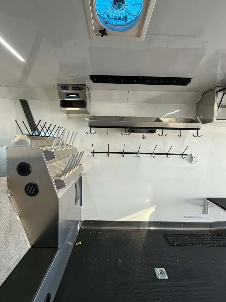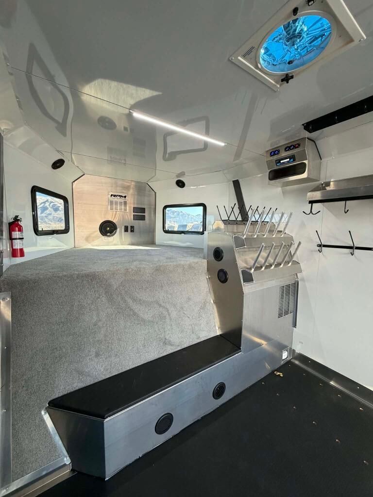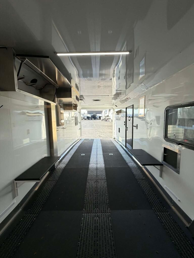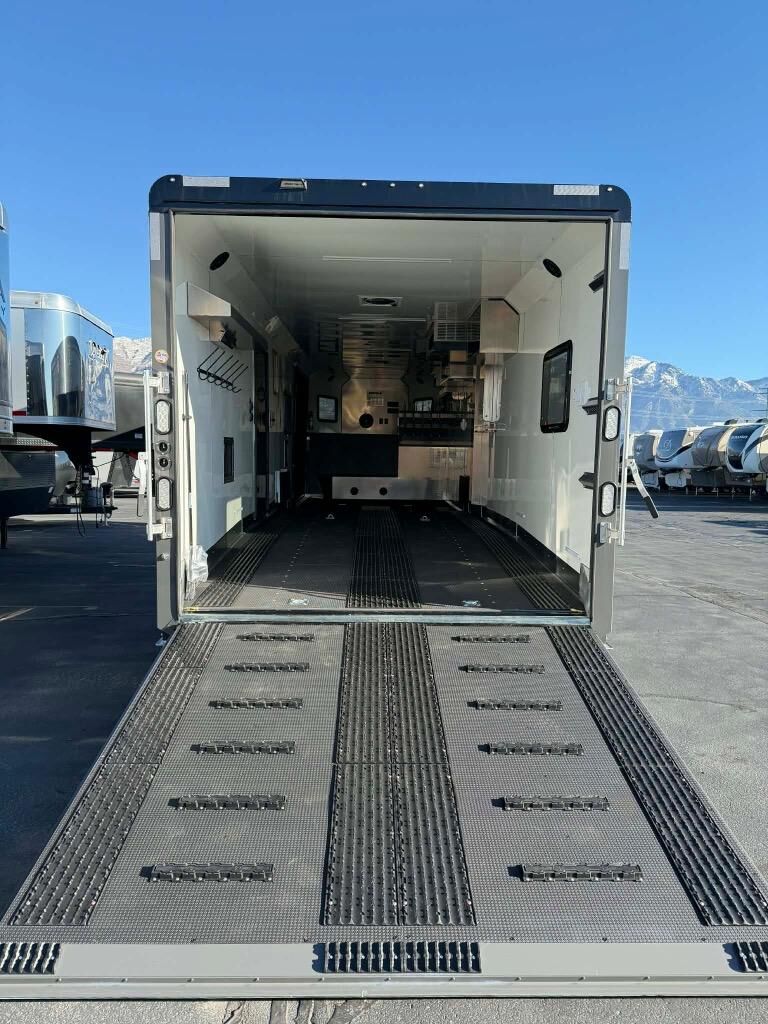 Gooseneck cargo trailer designed for OHV's such as snowmobiles and ATV's.
