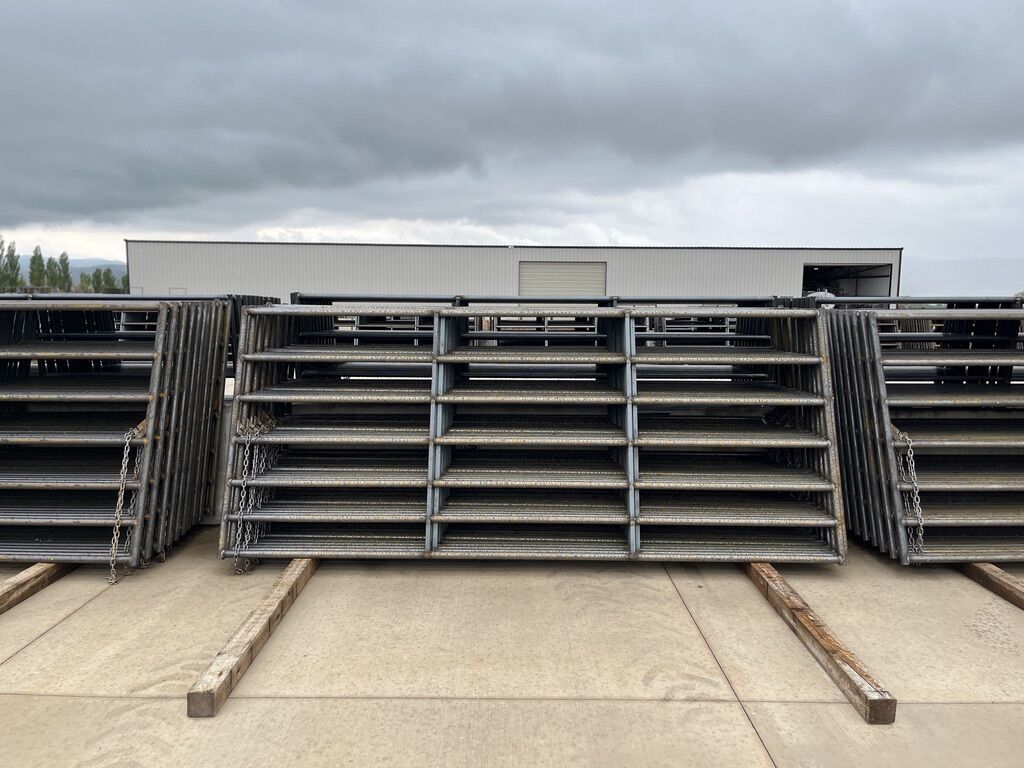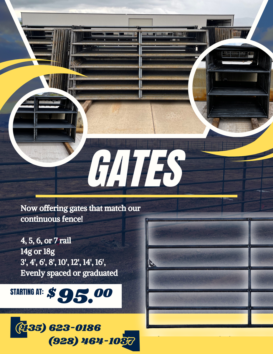 Gates made right here in Utah! Availble in 3', 4', 6', 8', 10', 12', 14', and 16'. Made out of 14g or 18g bare steel 1 5/8" pipe. Chain keeper, chain, and hinges included. Hinges insert top and bottom and are pre-coped to fit the size of post you are mounting it to. Gates are made in 4 rail, 5 rail, 6 rail, and 7 rail. Available sizes vary based on amount of rails, feel free to call for specfics and prices. Gates are made to fit inside hole of size named; for example, a 12' gate fits exactly for a 12' hole (accounts for hinge size and swing). For random sized holes we do make custom length gates!