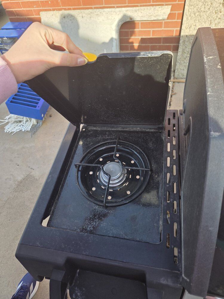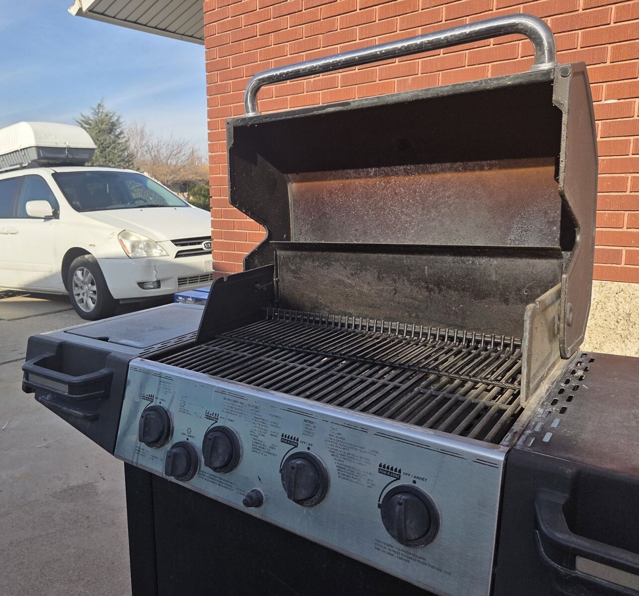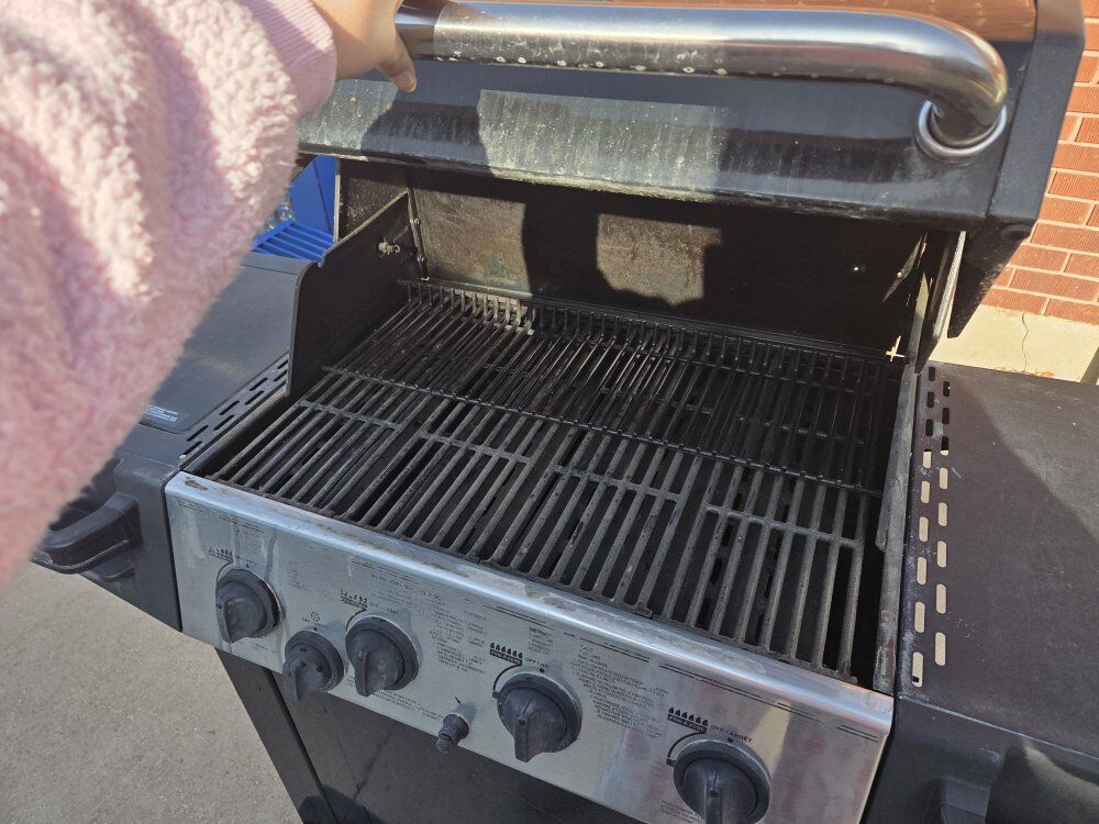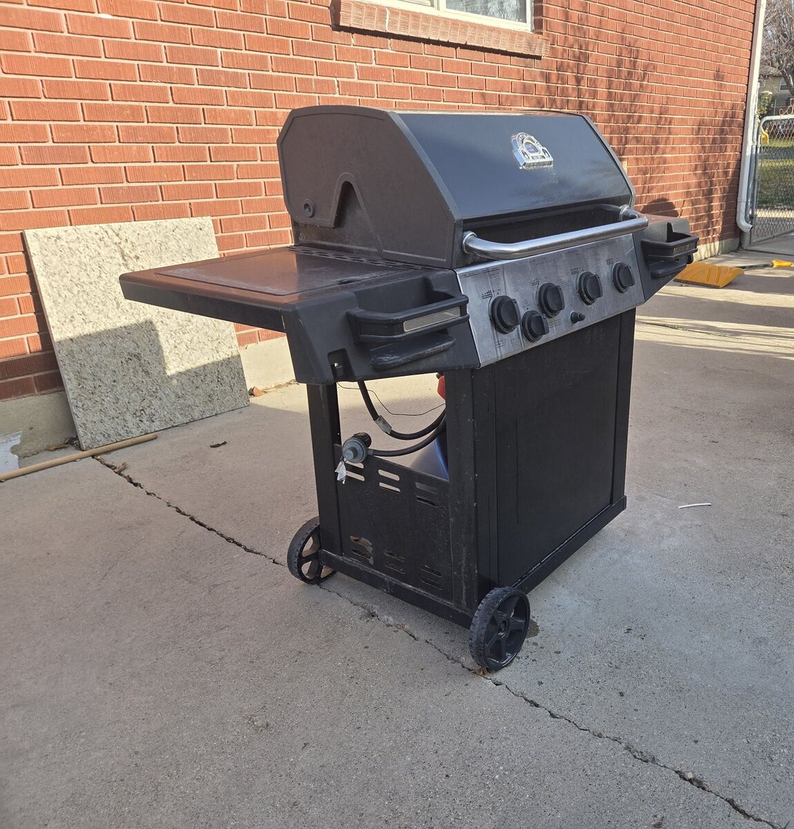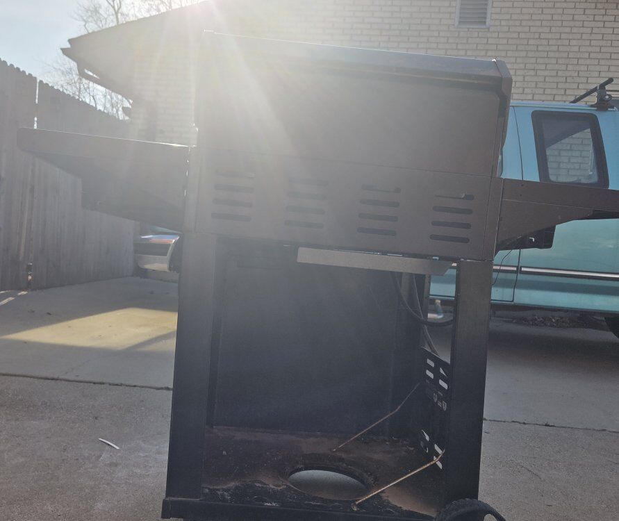 ZelleMostly new gas grill, works nicely, and is in very good condition, has moveable wheels and has a good lid protector. Measurements: Side-to-Side: 58 inches Height: 46 inches Front-to-Back: 21.5 inches