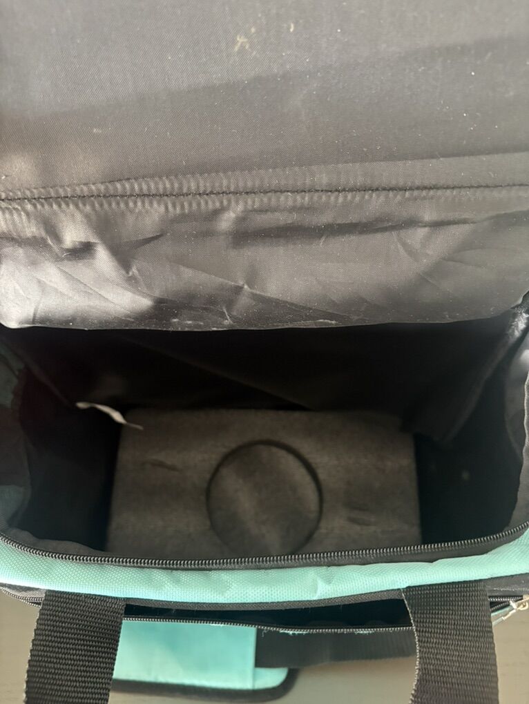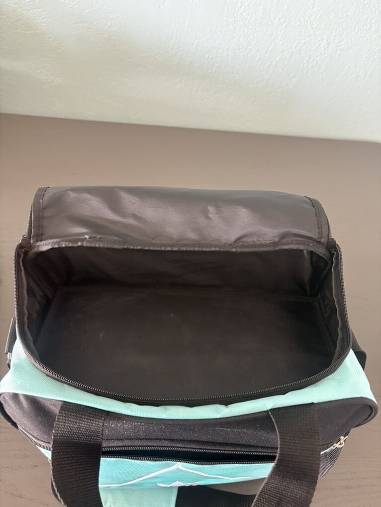 VenmoTeal/black bowling ball bag. Can be an over the shoulder bag. It has a front zipper for cleaning rags or misc stuff. Can hold one bowling ball and a pair of bowling shoes in the bag. It’s only been used a few times because we upgraded to a two bowling ball holder bag. I’m asking $10 for it or best offer. If you’re interested in it please let me know!