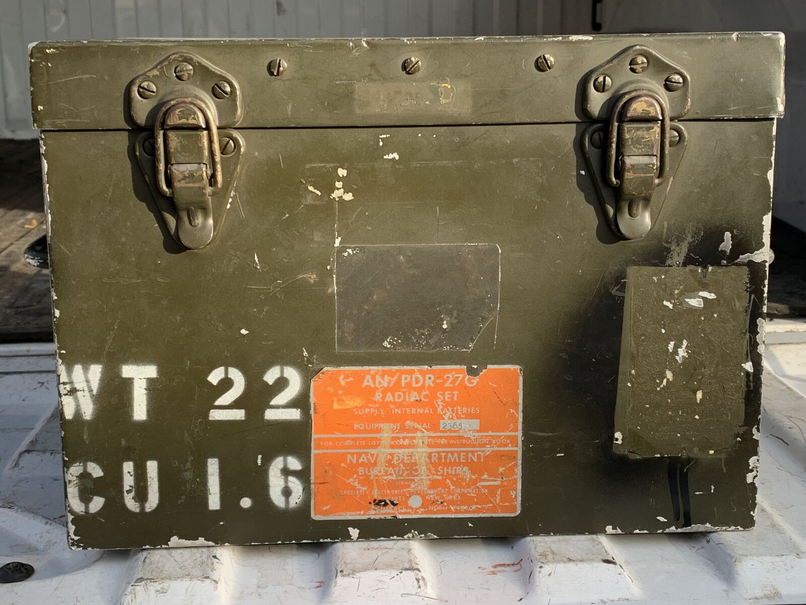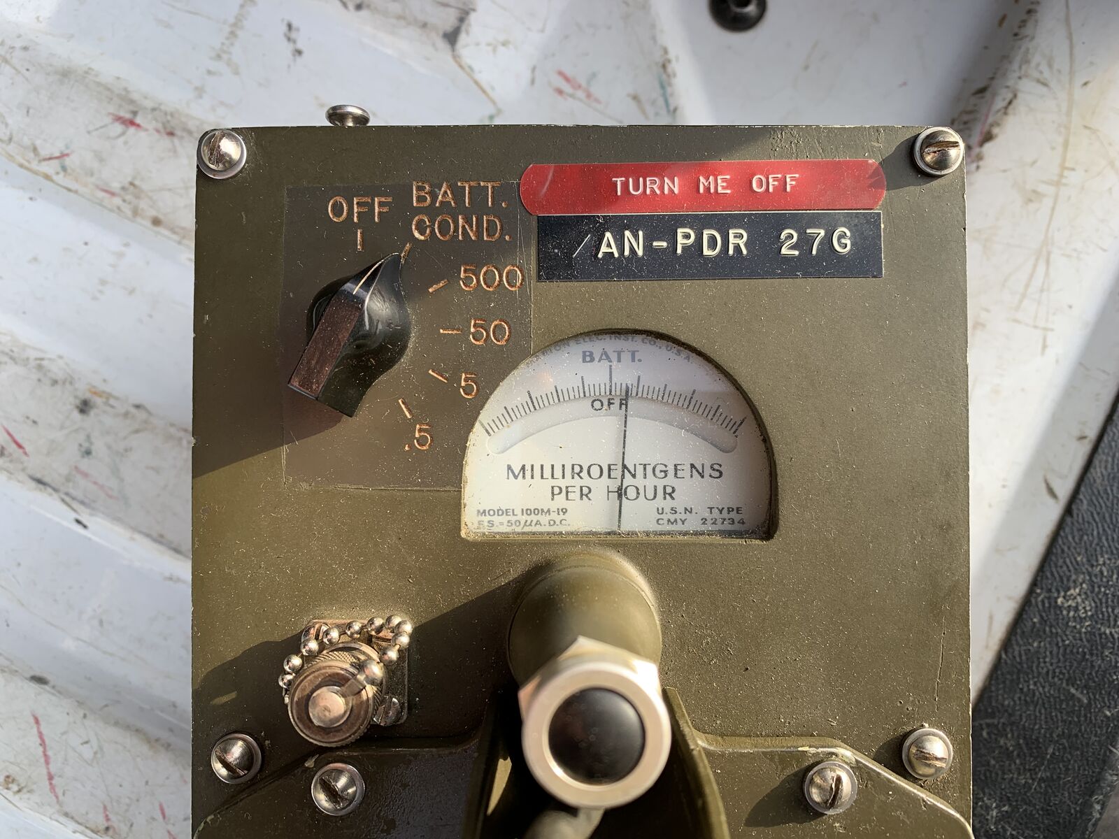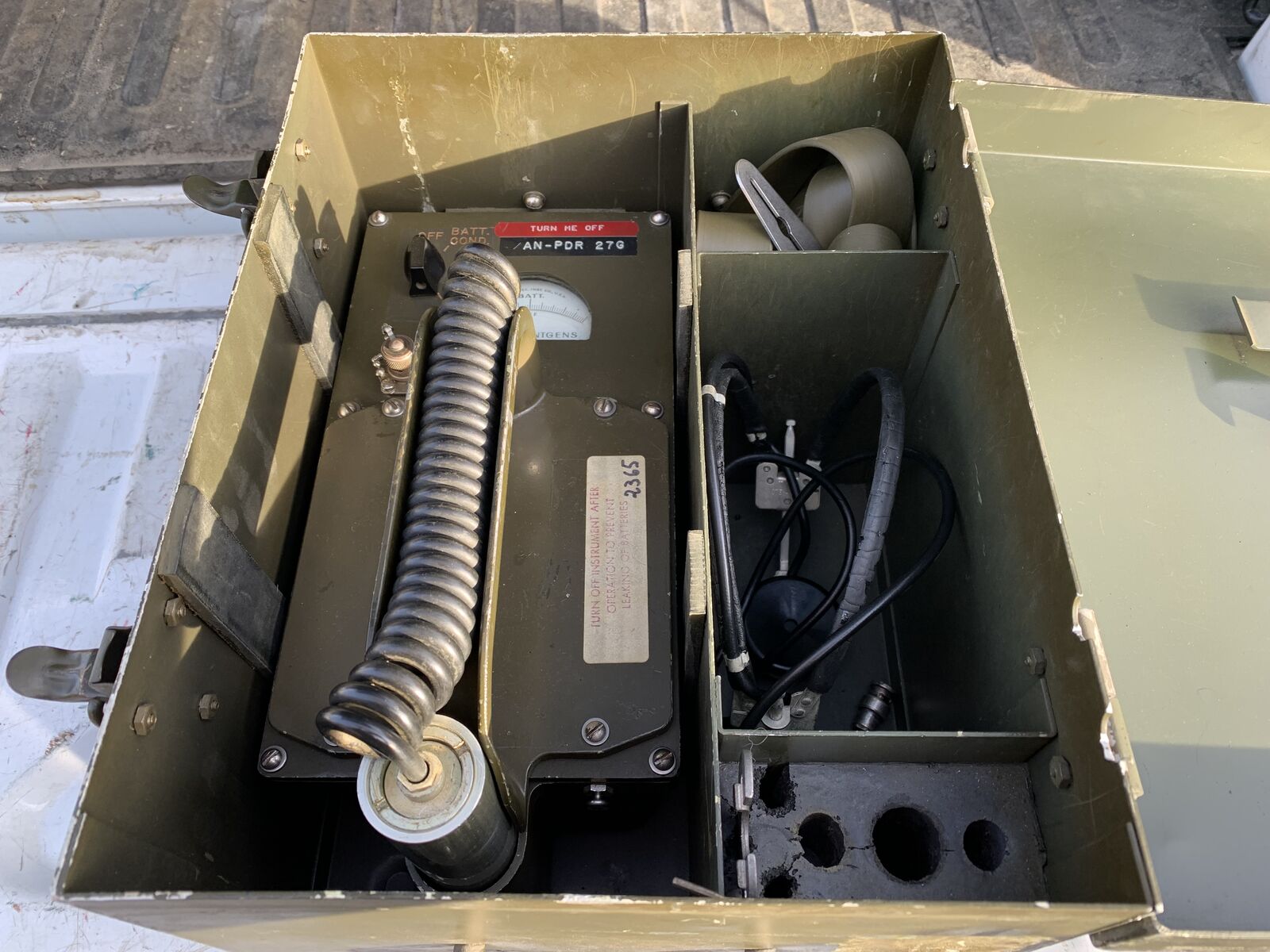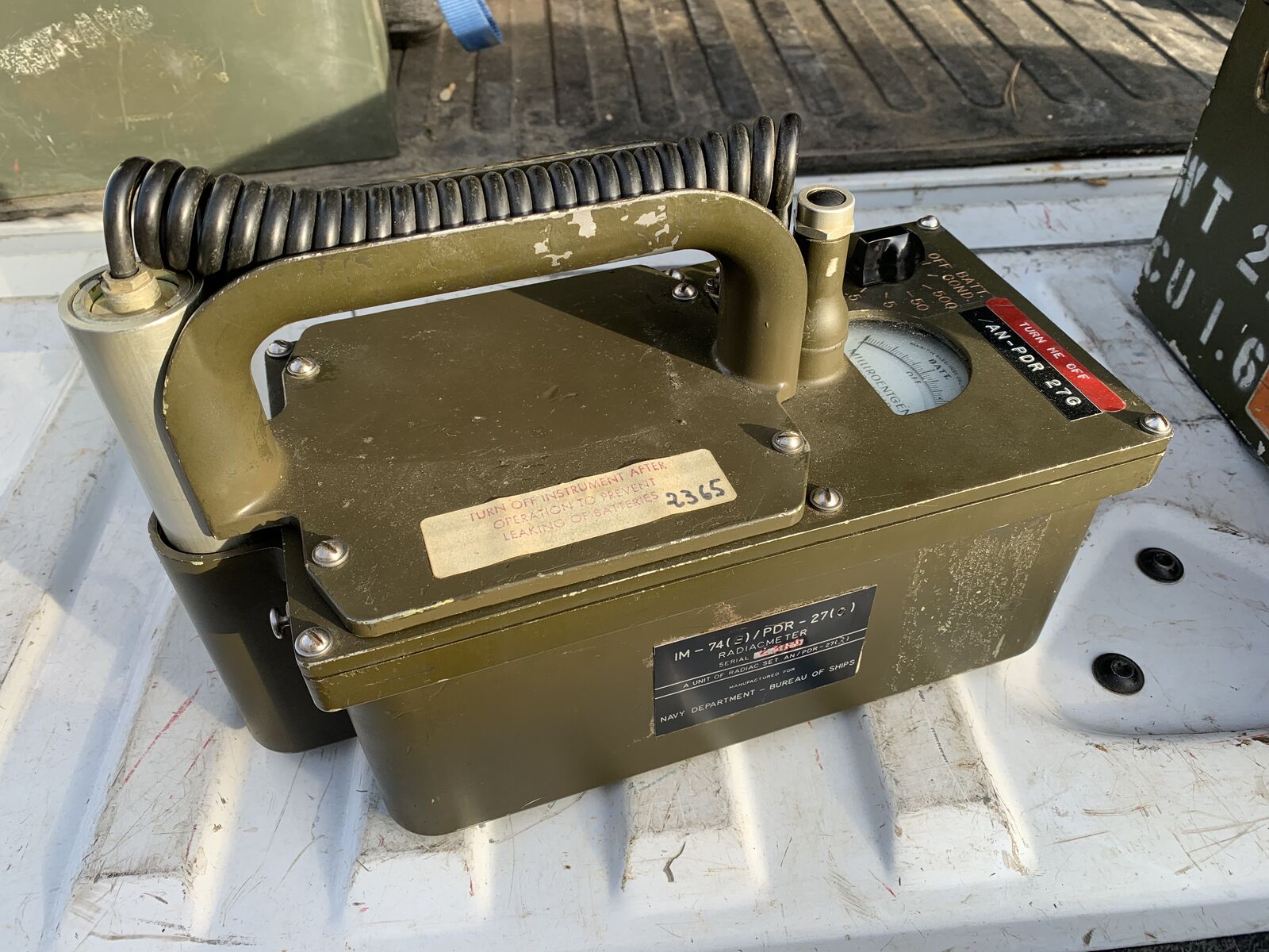 Cold War era grandad to the classic yellow Civil Defense Radiological meters. This awesome Radiacmeter IM-74(B) (Serial 2365) is in physically clean, great condition. It comes in it is original Navy Department Bureau of Ships steel transport case with shoulder carry strap and headset. Perfect for your display collection or part of your military truck load-out.