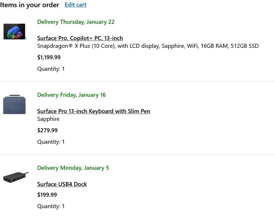 PayPalThis is the most current surface pro. Comes with the surface, keyboard and stylus, and a docking station. This is saving you around $300 in comparison to ordering from Microsoft or costco. We thought this would be able to do what we wanted but are finding an actual desktop will be better for what we are doing. pictured is what is included and what it prices directly from Microsoft. save time and money and get it here. more details can be found at https://www.microsoft.com/en-us/d/surface-pro-for-business-copilot-pc-13-inch-snapdragon/8nl1w61jw8zm#tab-tech-specs