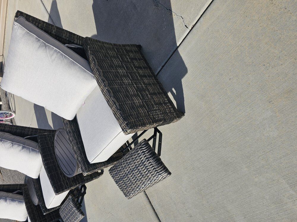Model set Priced as a 5 pc set however does come with another chair that needs a back leg (broke in transit) Comes with all covers Sunbrella cushions so wont fade Retails over 2k get it during winter price Firm on price if listed its available