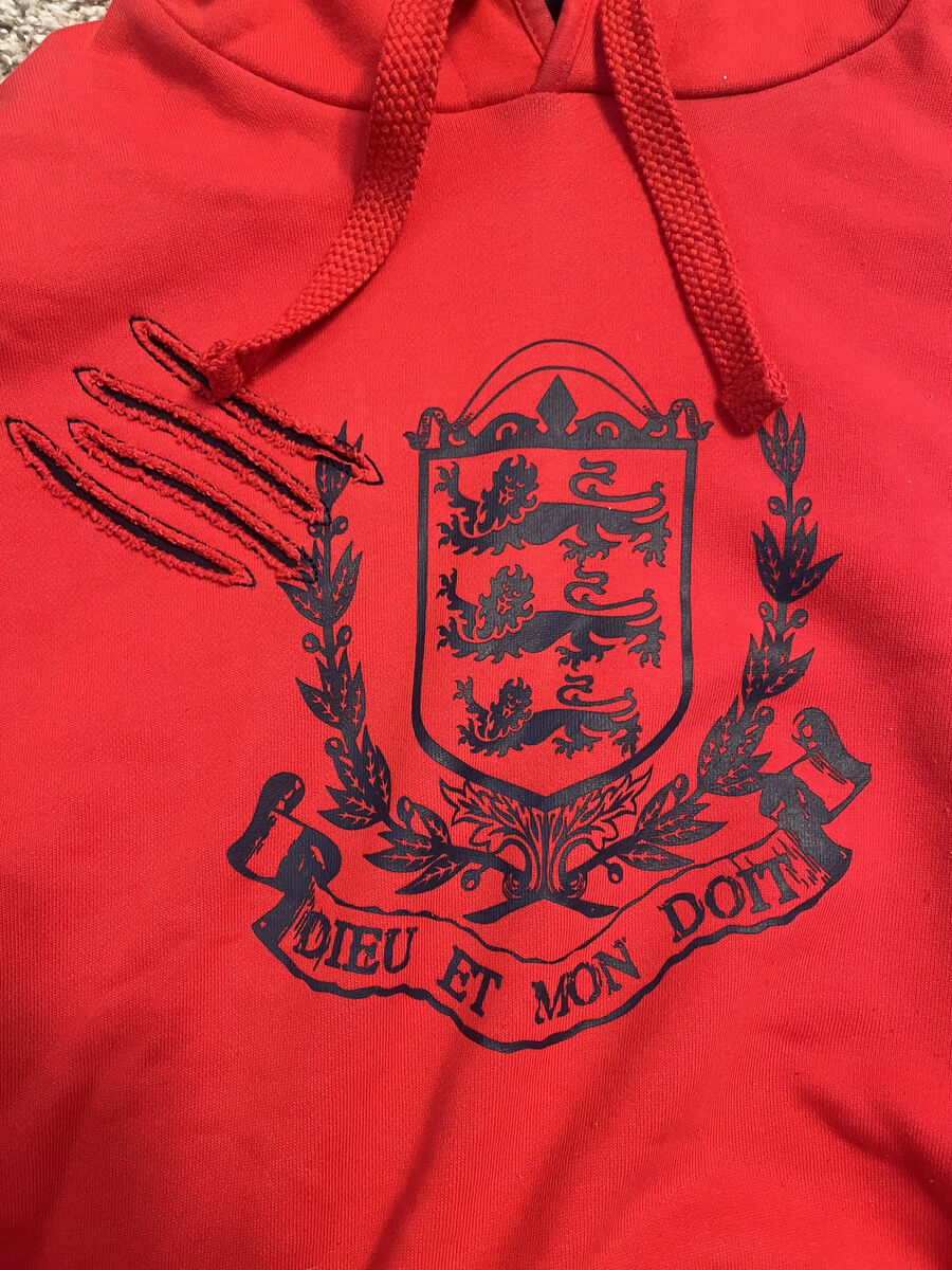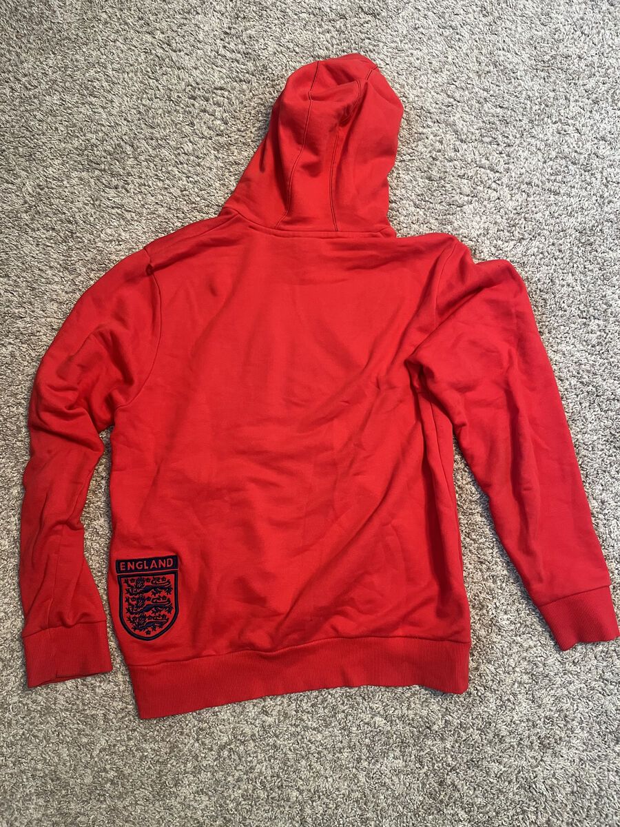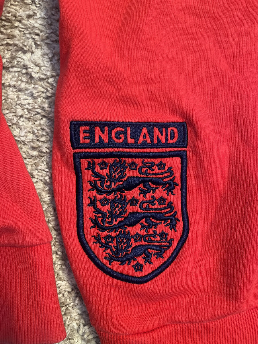 VenmoThe Umbro England Hoodie for men in size Large features a patriotic design with the phrase "Dieu et mon droit," translating to "God and my right." This red sweater with a hoodie style is a comfortable yet stylish addition to any man's wardrobe. Made by the trusted brand Umbro, this sweater is perfect for showing off your support for England in a casual and trendy way.