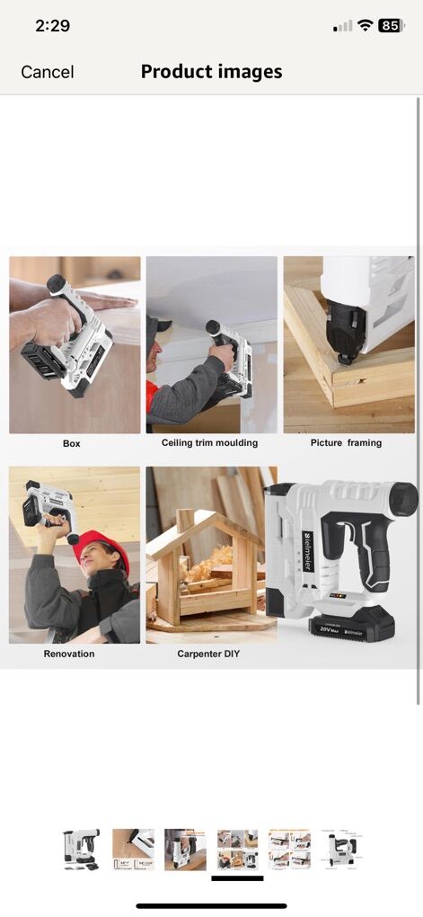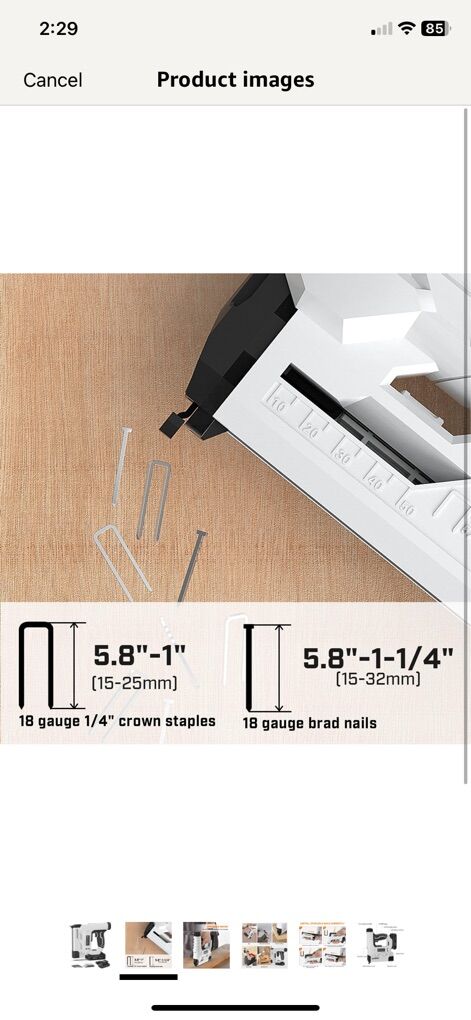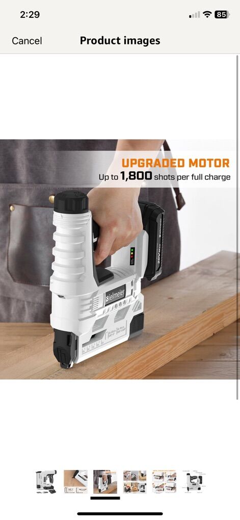 I have several of these available Bielmeier 20V MAX 2.0Ah battery powered 18 gauge 2 in 1 cordless brad nailer is great for upholstery, woodworking, DIY, and carpentry. It can drives a range of 18 gauge brad nails from 5/8~1-1/4 and staple from 5/8~1. The cordless nail gun built-in LED Light, compact in size and lightweight, this 18 gauge cordless nail provides you with access into tight and dark spaces. The high-efficiency motor makes its impact rate reach 30 times/min.