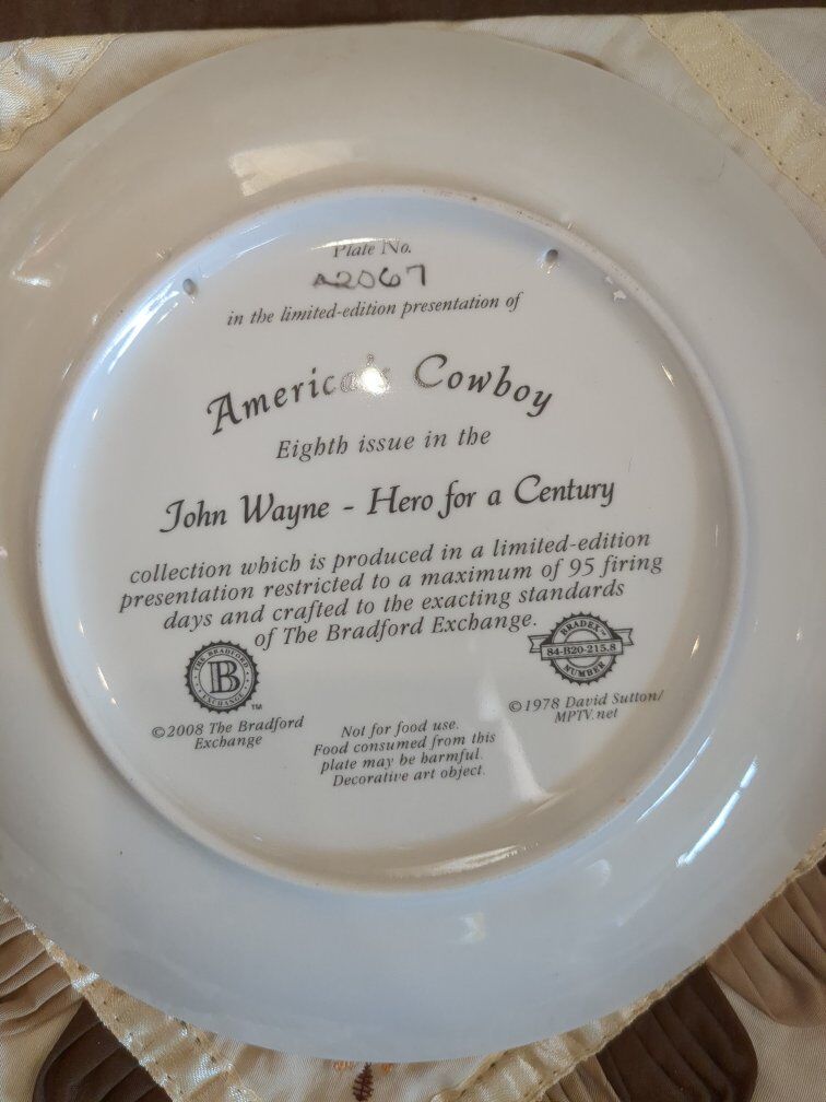 VenmoJohn Wayne collectors plate of "America's Cowboy." Plate measures 8.25" in diameter. $65 Plate #A2067