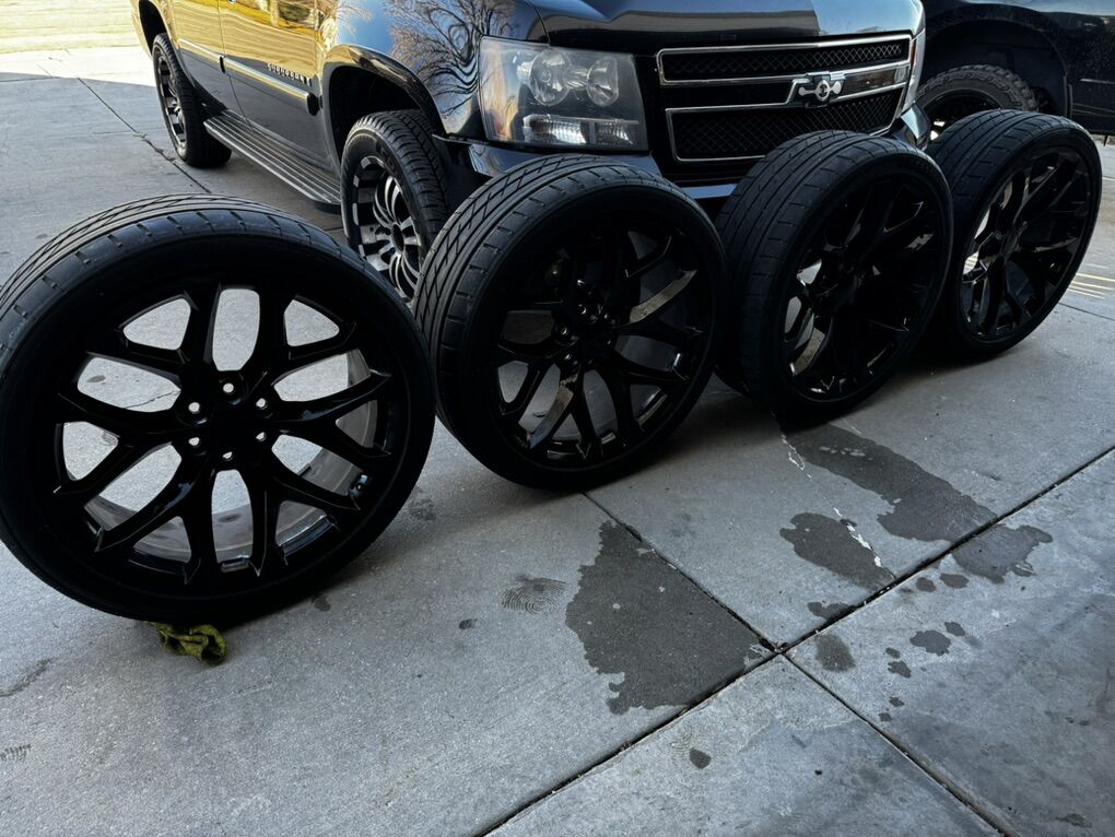 VenmoSelling these rims and tires in good condition got some curb rash came off of a suburban bolt pattern 6x139.7mm (or 6x5.5 inch) I’m also considering trading for some 20” black rims and tires let me know what you got