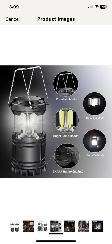 Zelle2 Pack LED collapse able Battery Operated Lights, Portable Survival Battery Powered Lamp, Waterproof Camping Lantern, Suitable for Hurricane, Emergency, Storm, Outages, Outdoor Collapsible Lanterns, Black