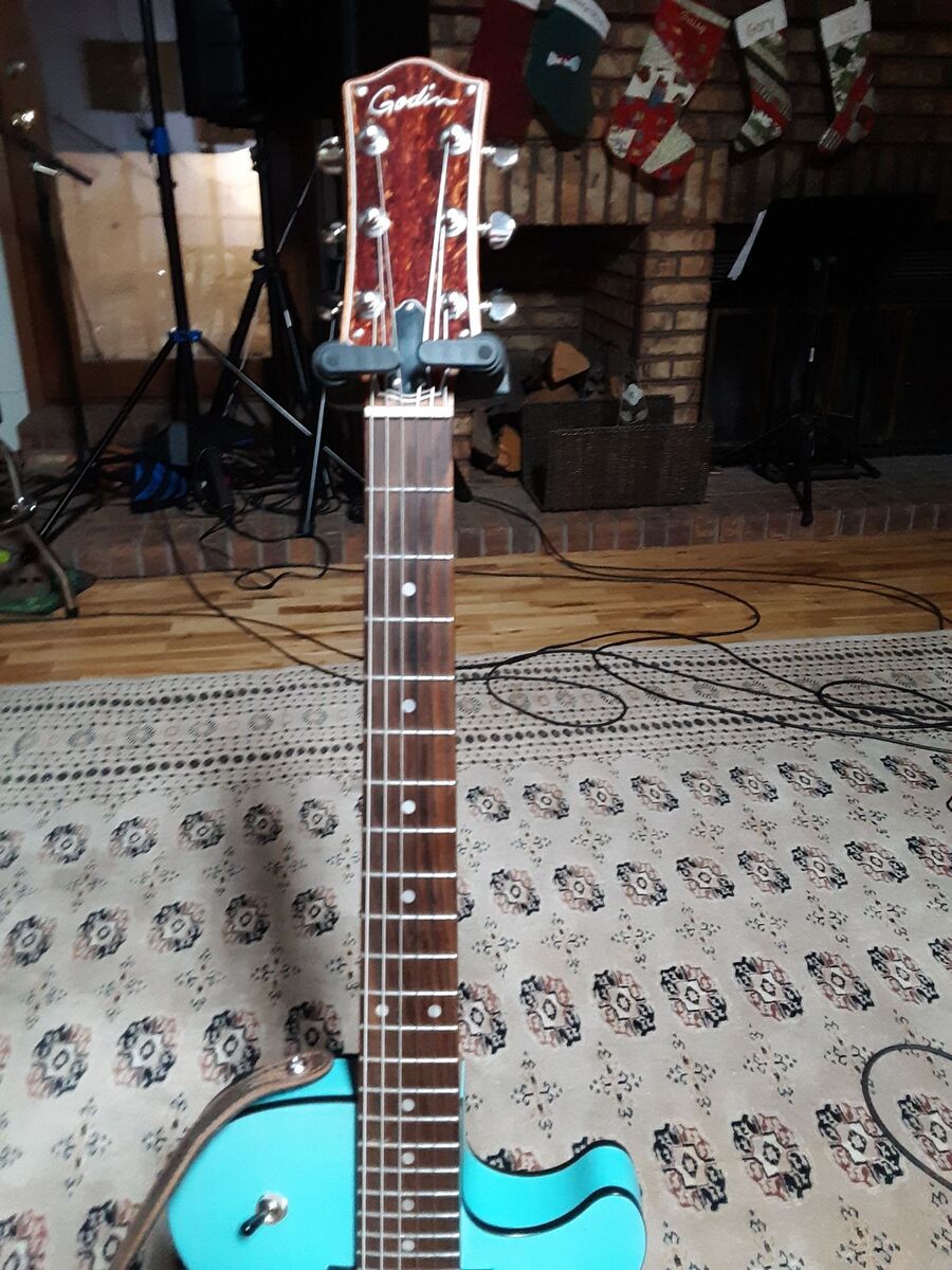 Godin is made in Canada and have become an American made standard value. Many stores carry the acoustic Seagull line that you may have seen and are very popular and less expensive Martin alternative. The Seymour Duncans kill.