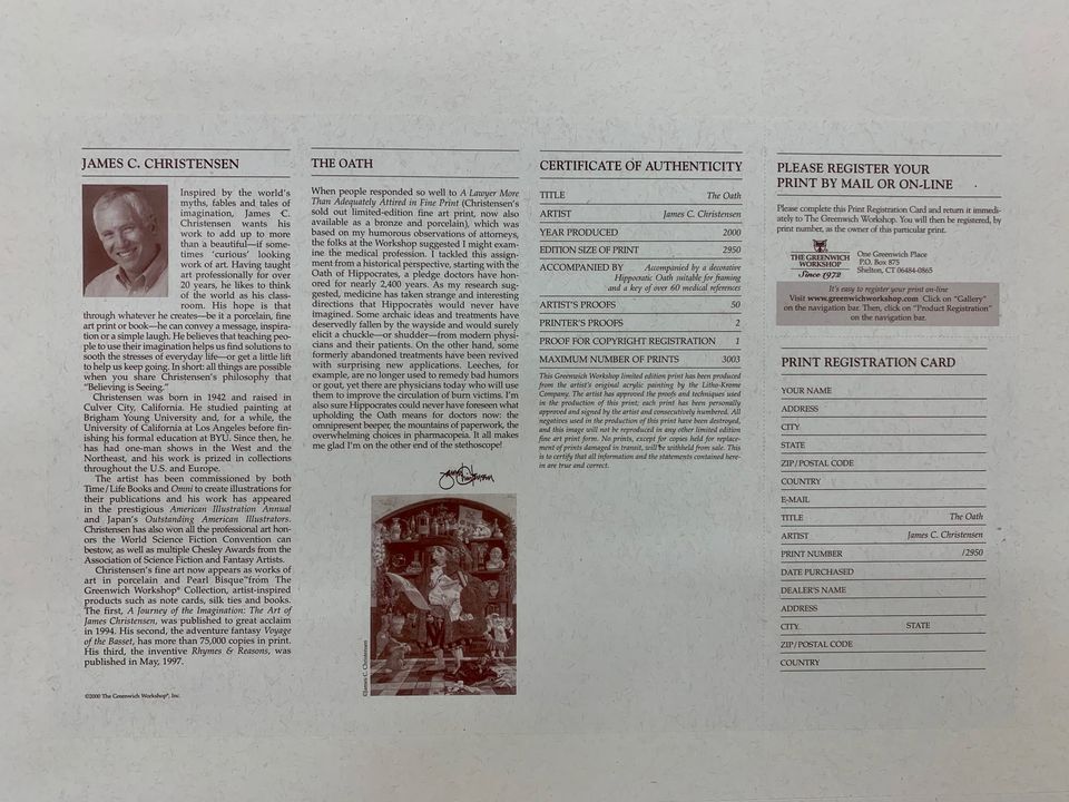 PayPalThe Oath - James Christensen signed and numbered/ print.