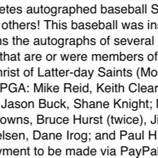 ApplePayOne of A Kind All Different Sports and Players Autograph baseball of LDS members of the Church of Jesus Christ of Latter Day Saints.